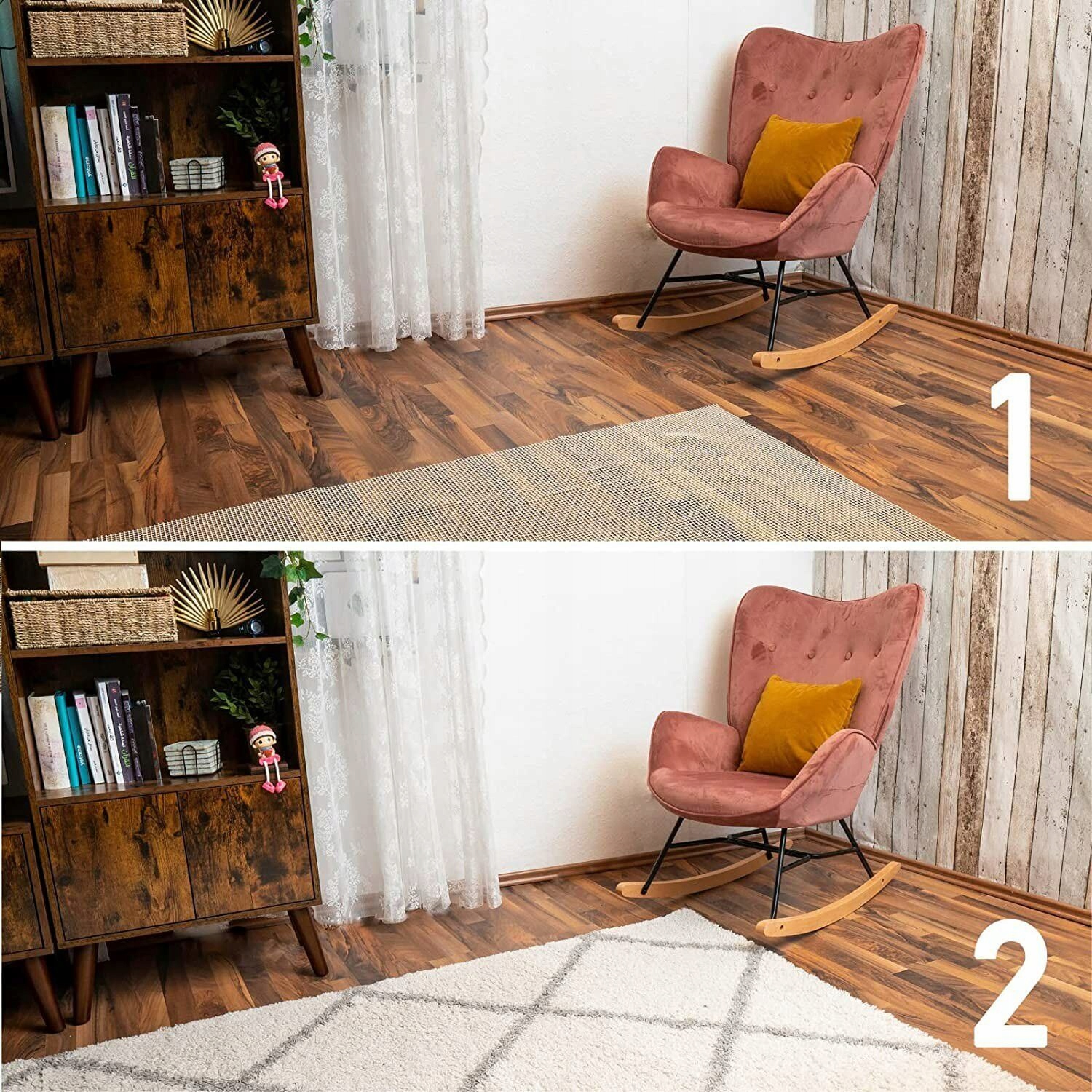 ✅ Хороша повітропроникність:Відсутність клею, хороша повітропроникність і тонкий протиковзкий килимок не залишають слідів на килимах і підлозі. тримає килими рівними та на місці, простий у використанні пилосос, запобігає зминання та скручування.