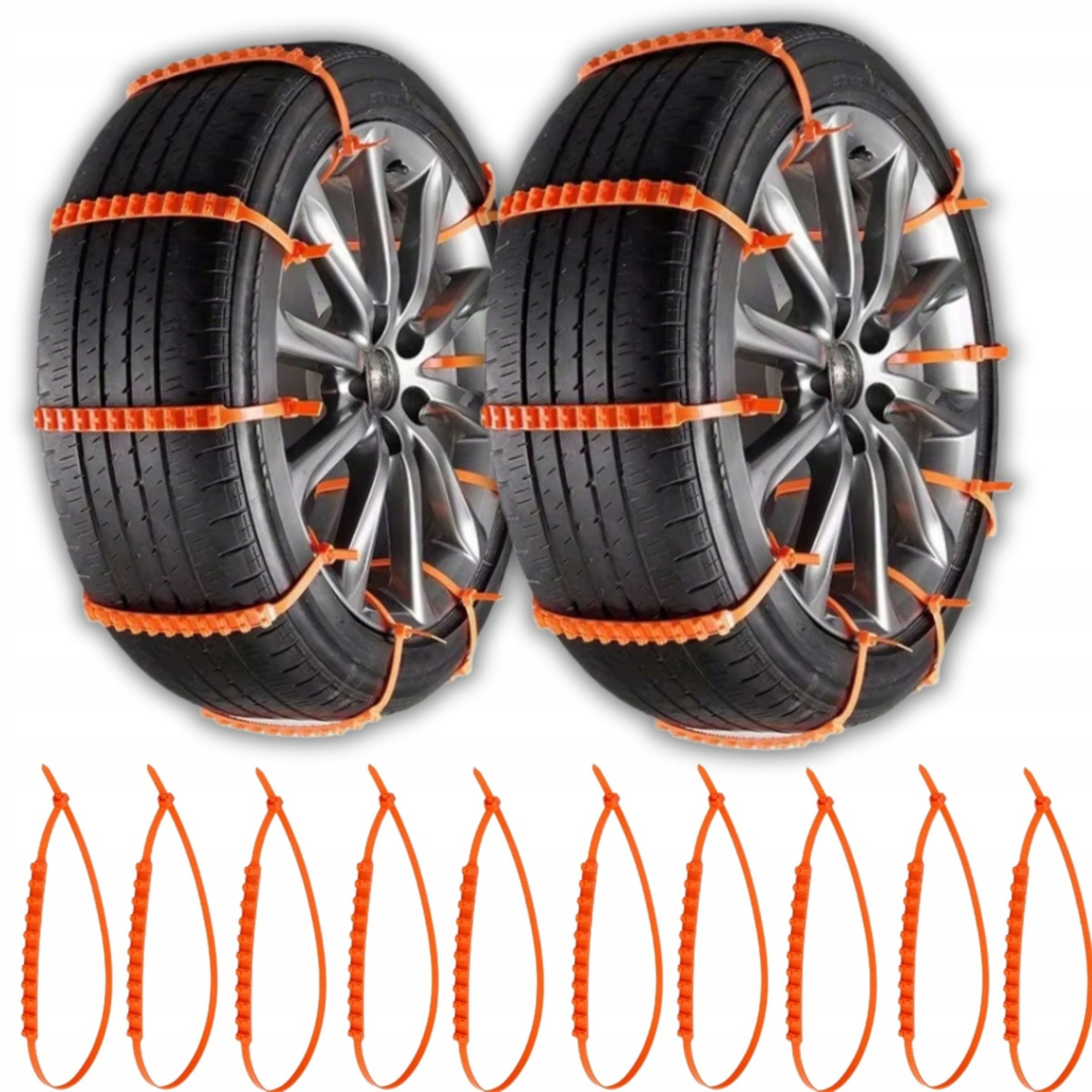 У набір входять 10 міцних ремінців, які дозволяють закріпити два ведучих колеса. Це важлива частина обладнання, яка може допомогти в кризових ситуаціях, коли класичні ланцюги недоступні або їх важко встановити. Подбайте про свою безпеку та безпеку своїх пасажирів - завжди майте браслети в багажнику.