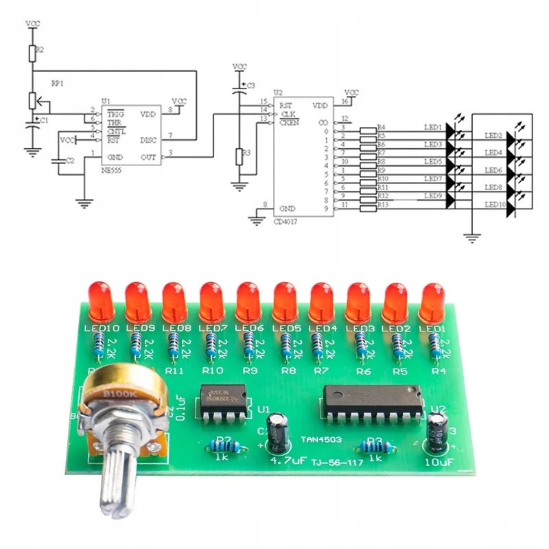 Системи мають на пластині схему друкованої збірки. Вам потрібно звернути увагу на полярність за такі елементи, як конденсатори, діоди, транзистори. У випадку світлодіодів довша нога - це плюс +, більшість елементів описали параметри на корпусі. Резистори можуть мати позначення смужок, їх опір та толерантність можна прочитати за допомогою калькуляторів, доступних в Інтернеті або вимірюванням лічильника. Порядок складання зазвичай безкоштовний, залежно від системи, ми спочатку встановлюємо найменші елементи.