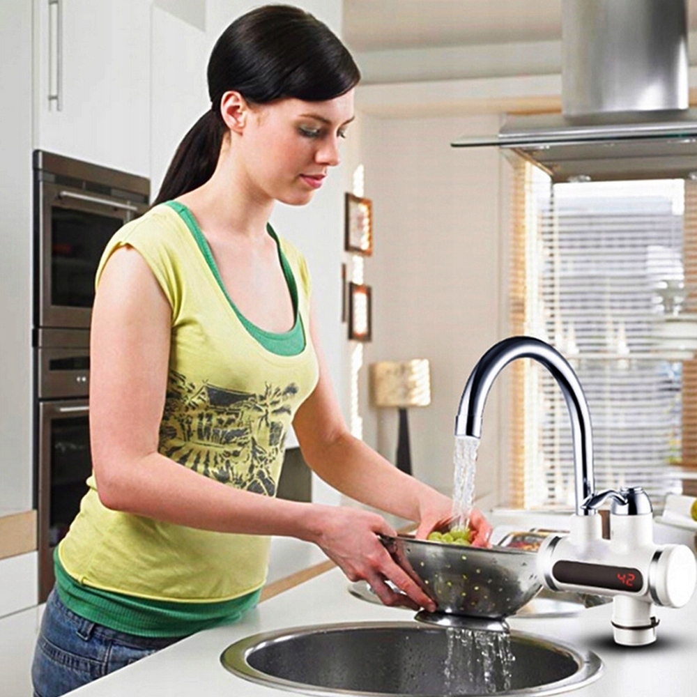 Пристрій має вбудований термометр, який показує на РК-дисплеї поточну температуру води, що протікає через нагрівач.