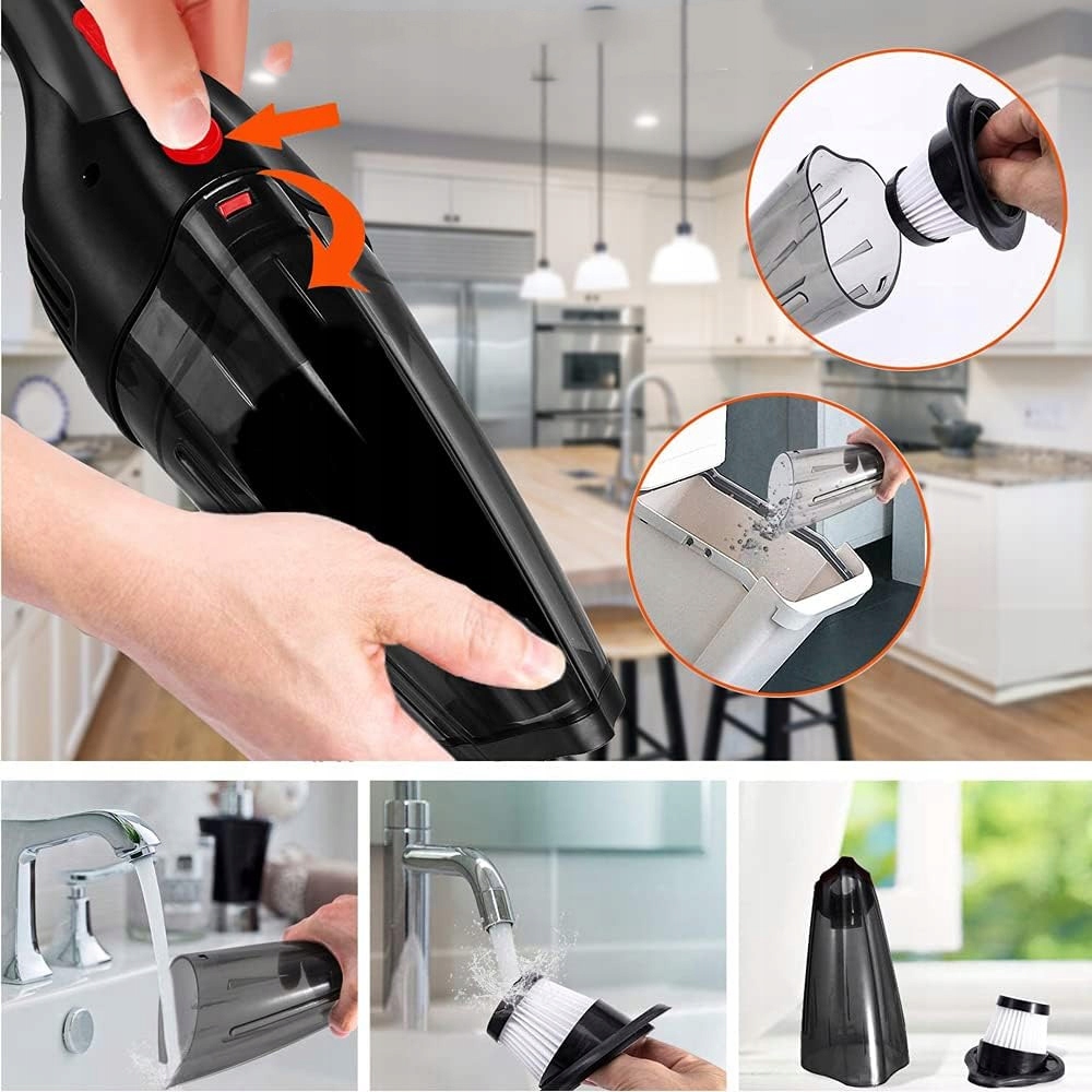 Цей ручний пилосос оснащено фільтром HEPA, який можна мити, який може ефективно запобігати адсорбції пилу на сітці фільтра та підтримувати високу потужність всмоктування для підвищення ефективності очищення. Після використання його можна розібрати та повторно використати для прання.