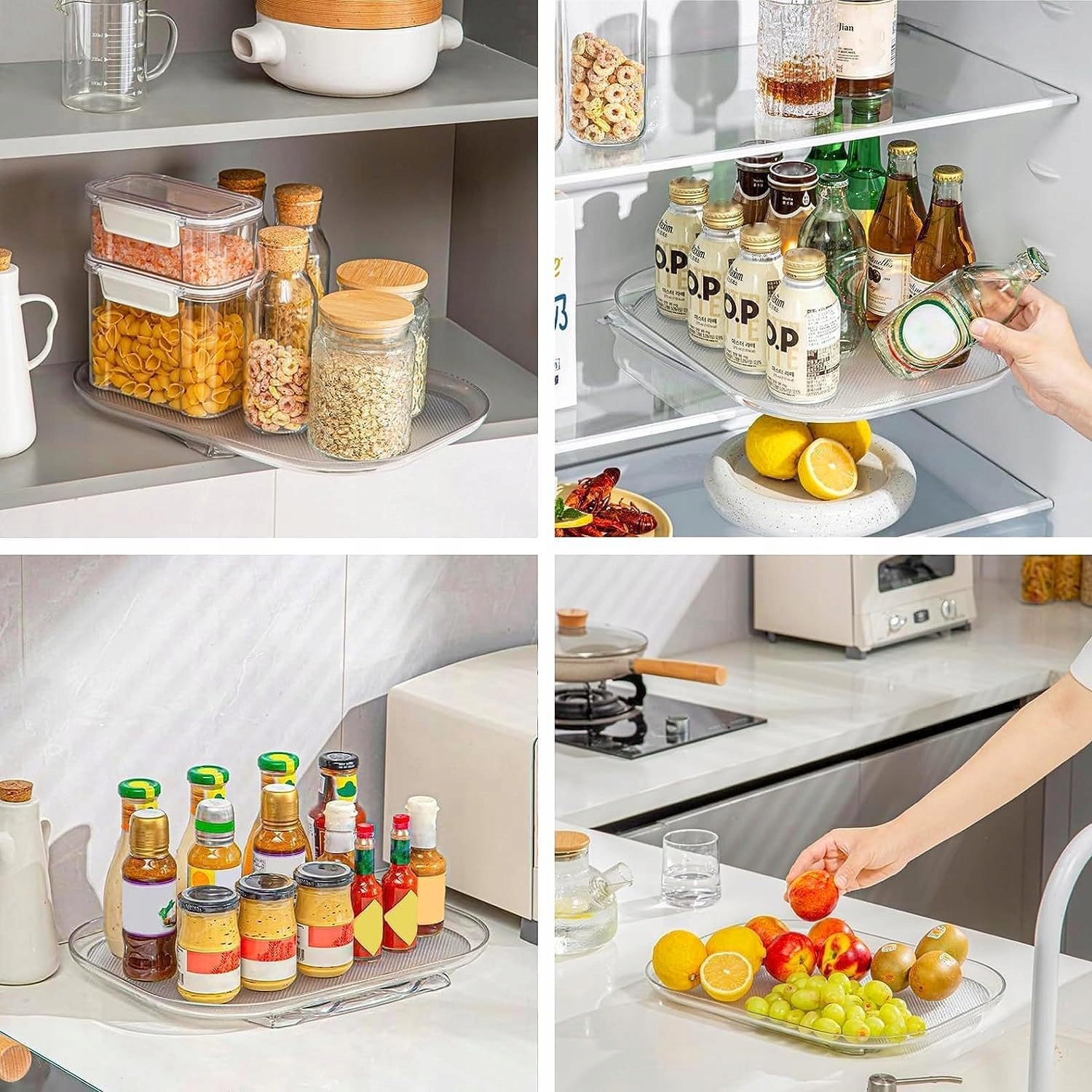 Широке використання: Цей органайзер для холодильника-каруселі має розроблений для холодильників, але також пропонує широкий спектр застосувань за межами кухні. Підходить для кухонь, гардеробів, холодильників, спалень, ванних кімнат та інших кімнат.