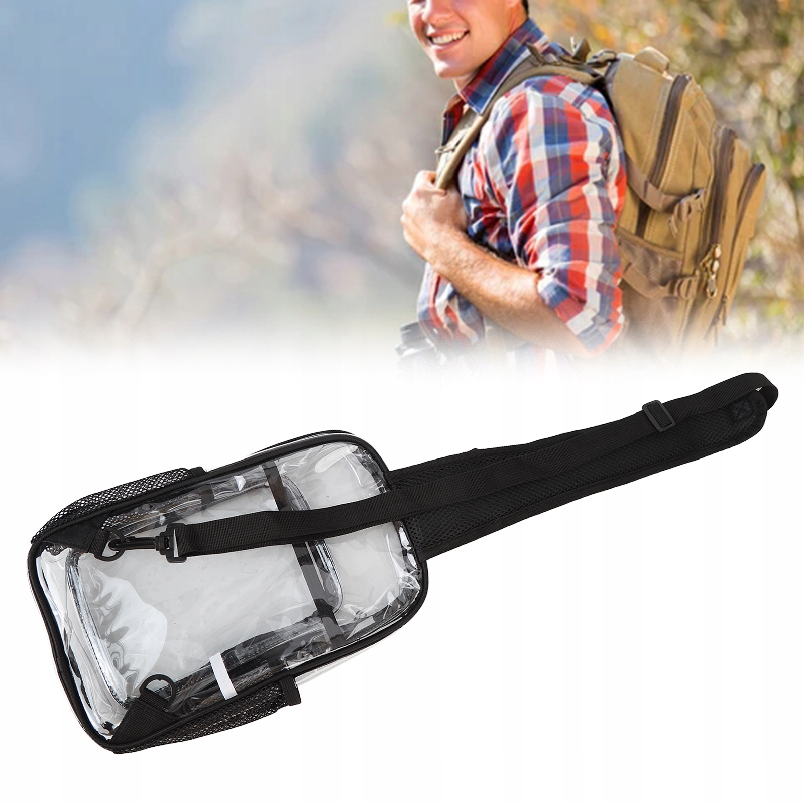 2. КІЛЬКА КИШЕНЬ: Чоловіча прозора сумка на плече має передню кишеню на блискавці для зберігання мобільного телефону, зарядного пристрою тощо. Включає додаткові сітчасті кишені для пляшок з водою чи інших необхідних для подорожей речей.