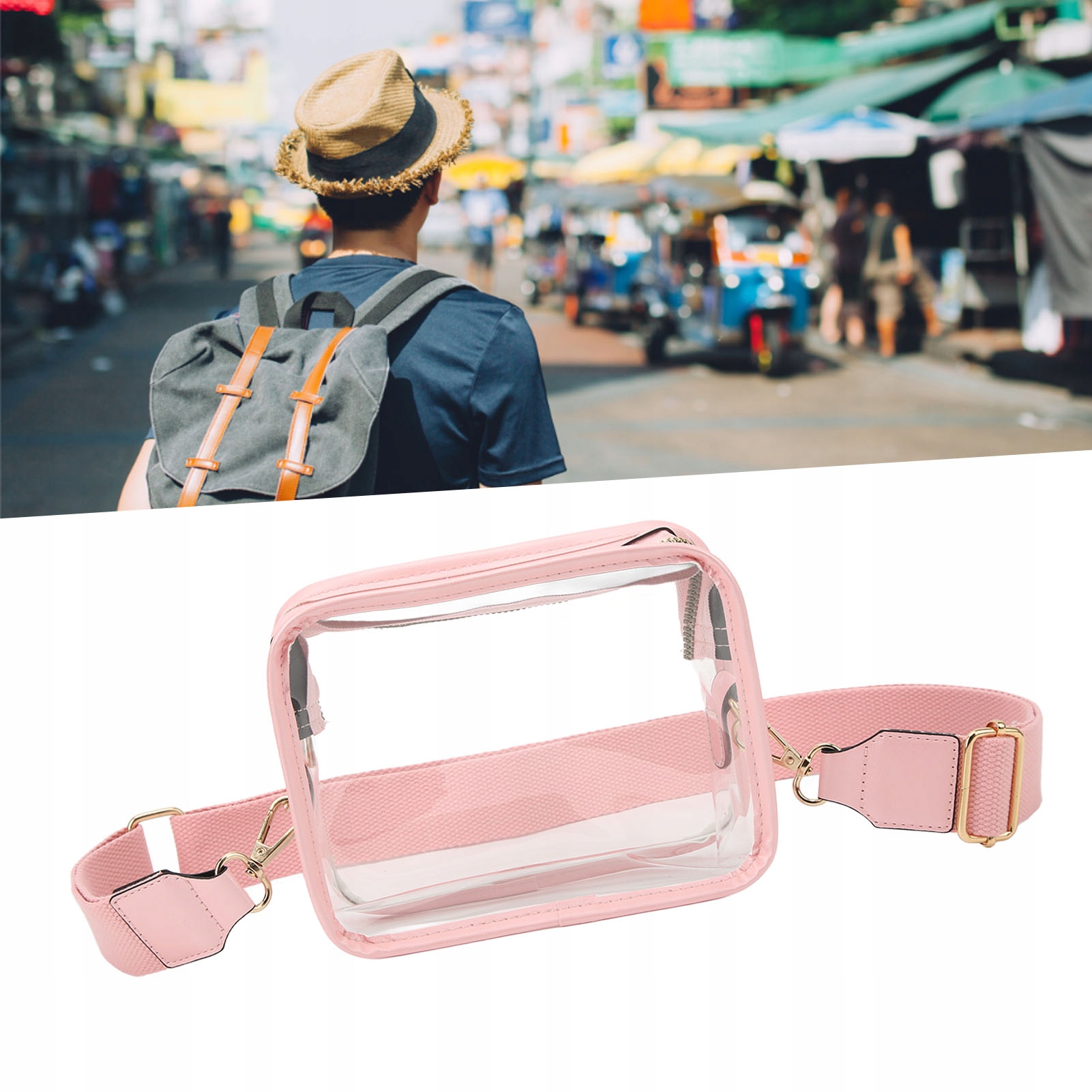 5. З регульованим ремінцем: ця прозора сумка є легкою та має регульований ремінь, завдяки якому він може бути використаний як сумка або сумка.