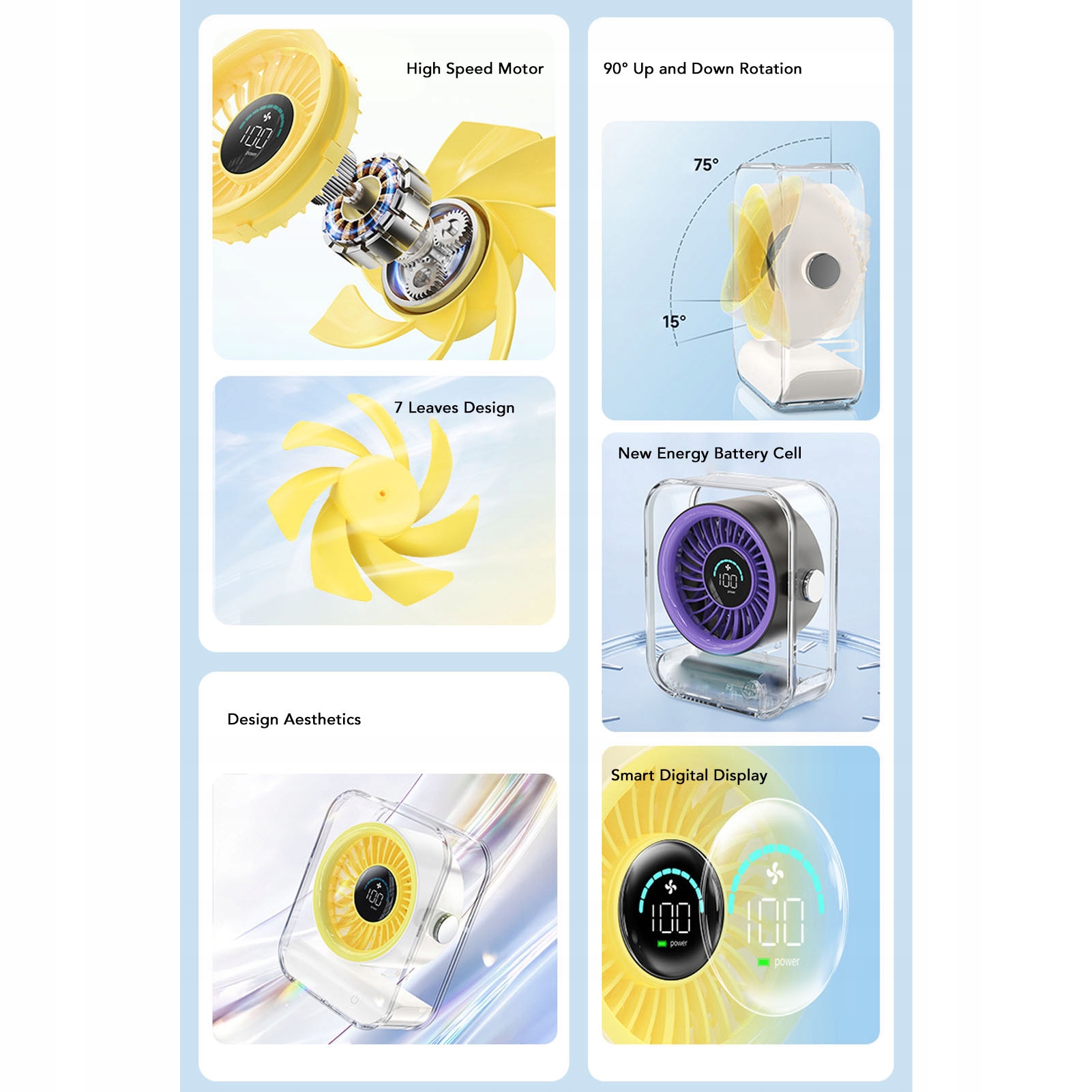 4. Довгий час роботи акумулятора: Завдяки довгостроковим можливостям акумулятора, цей вентилятор столу підтримує постійне використання без перерв, що робить його придатним для цих спекотних літніх днів.