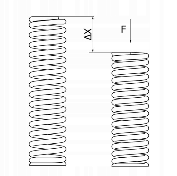 Сила «F» [кг], необхідна для прикладання до пружини, щоб вкоротити її на довжину «Δx» [см], обчислюється за формулою: