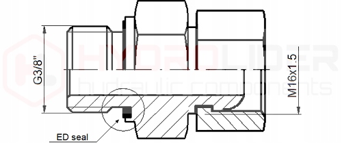 Дюймове з'єднання з ущільненням ED, вкручується в корпус насоса, приводу, розподільника, клапана тощо. Використання цього з’єднання не вимагає використання додаткових ущільнювальних шайб.