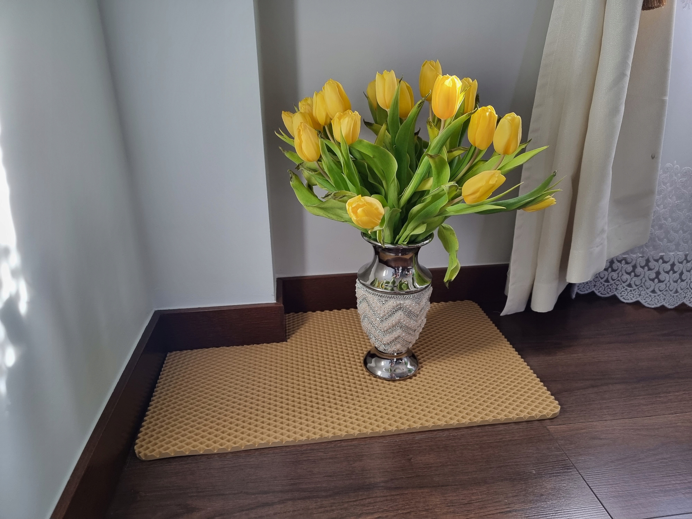 parta pad виготовлений з інноваційного матеріалу EVA, представляючи унікальну структуру у вигляді елегантних алмазів. Завдяки передовій клітинній системі з глибиною 10 мм , колодка ефективно захищає підлогу від можливого розливу води, забезпечуючи не лише функціональність, але й естетичний вигляд.