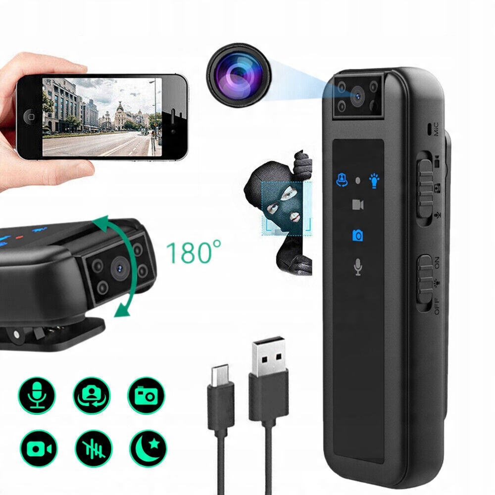 PRZENOŚNY MALA KAMERA WIDEO, MINI KAMERA NA CIALA, Z FUNKCJA NOKTOWIZORA