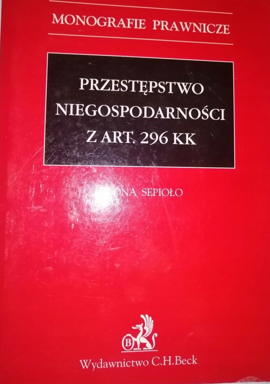 PRZESTĘPSTWO NIEGOSPODARNOŚCI Z ART. 296 KK Iwona Sepioło