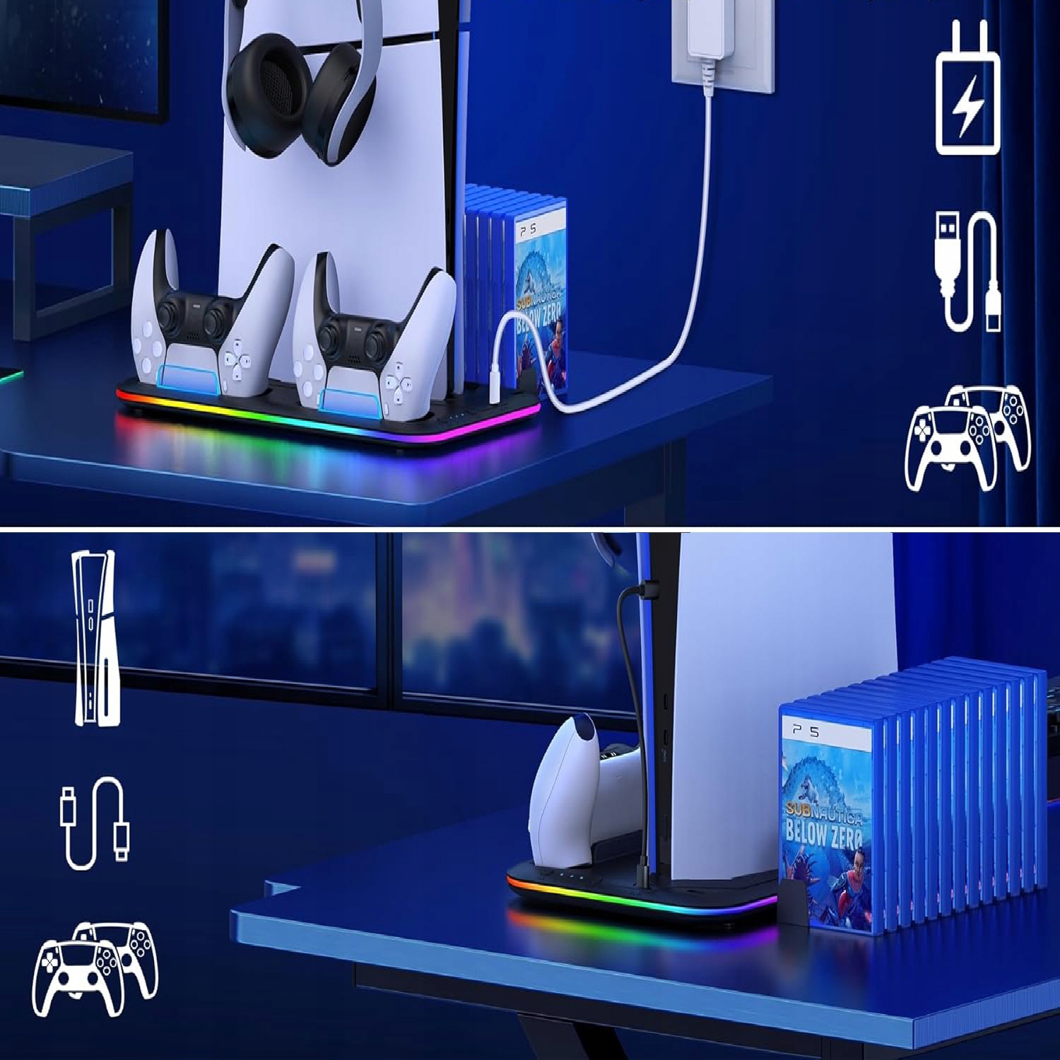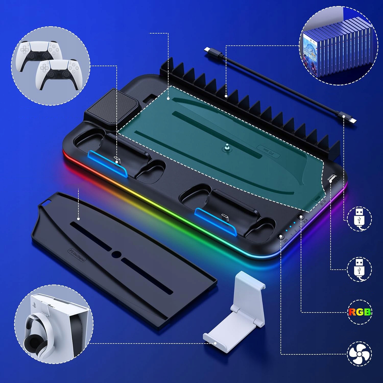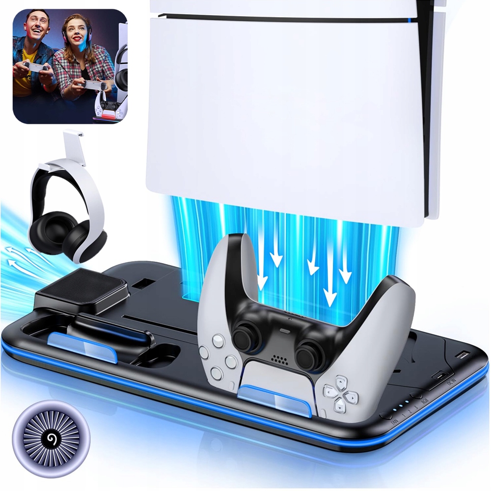 PS5/тонка охолоджувальна підставка з автоматичним турбовентилятором і зарядним пристроєм