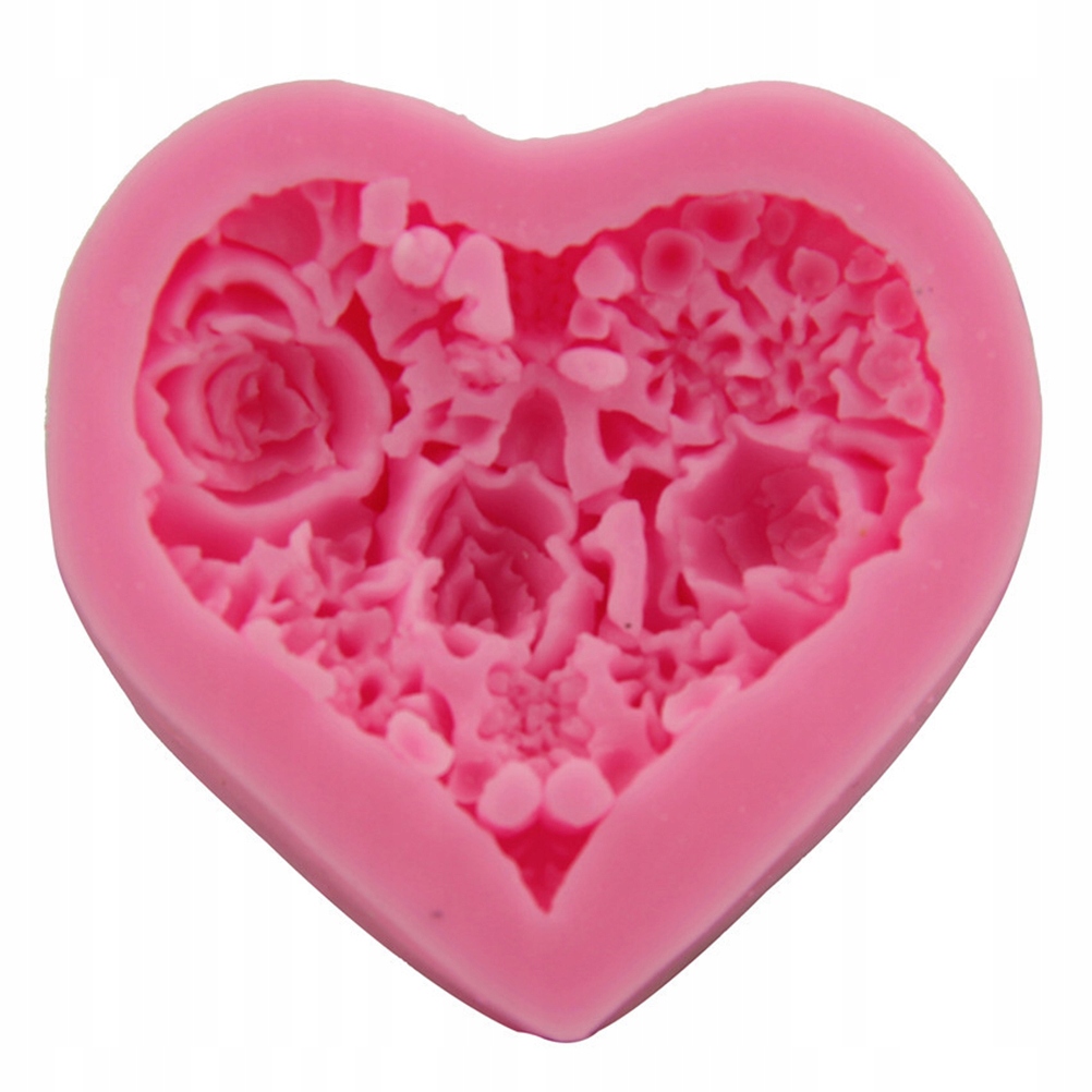 ✅1 х 3D силіконова форма для помадки у формі серця у формі троянди Приладдя для прикраси своїми руками Інструмент для пудингу Торти Шоколадне мило Полімерна глина Рожева