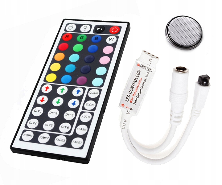 КОНТРОЛЕР ІЧ-ПУЛЬТА ДИСТАНЦІЙНОГО КЕРУВАННЯ ДЛЯ RGB LED-СМУЖОК 44 КЛАВІШИ + АКУМУЛЯТОР