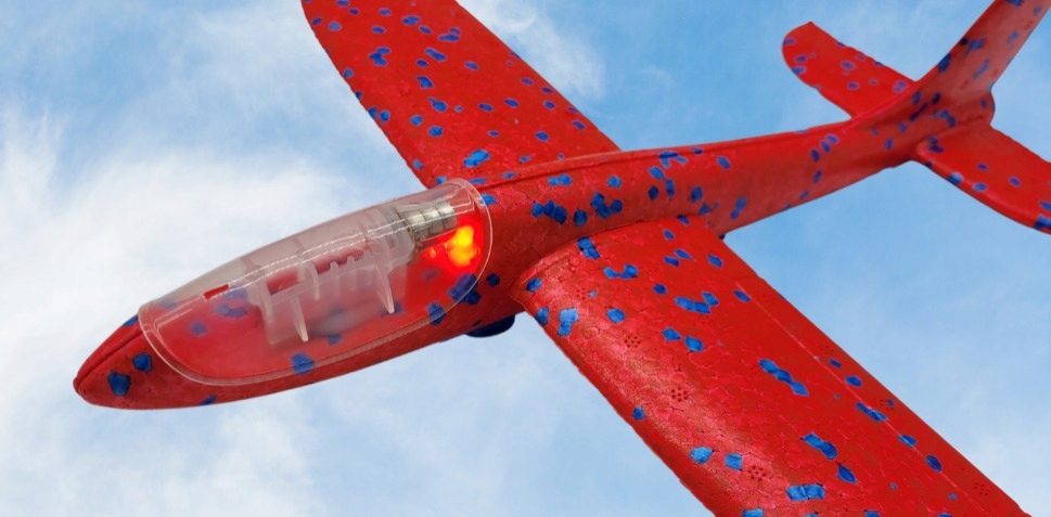 ІГРАШКА ДЛЯ САДУ, ПАРКУ АБО ІГРОВОГО МАЙДАНЧИКА - ЛІТАЧОК З ПУСКОВОЮ ПРИСТРОЄЮ ТА LED ЛІХТОМ. СВІТЛО ВКЛЮЧАЄТЬСЯ після старту літака та після зіткнення з перешкодою, БЛИМАЄ СИНІМ І ЧЕРВОНИМ. ЗА СВІТЛОМ ЛЕГШЕ ЗНАЙТИ ЛІТАК, наприклад, ВНОЧІ. ІДЕАЛЬНА ІГРАШКА ДЛЯ ДІТЕЙ, ЯКІ НЕ МОЖУТЬ ВИПУСТИТИ ЗВИЧАЙНИЙ ЛІТАЧОК З ПІНОПОЛІСТИРОЛУ. СТРІЛЯЙТЕ І ДИВИТЬСЯ, ЯК ЛІТАК ЛІТАЄ І СВІТИТЬ І ВІДРАЗУ ПІСЛЯ ЗІТКНЕННЯ З ЗЕМЛЕЮ ВМИКАЮТЬСЯ СВІТЛОВІ СИГНАЛИ. ЛІТАК МОЖНА КИДАТИ БЕЗ ВИКОРИСТАННЯ ПУСКОВОЇ УСТАНОВКИ, ТОМУ ЦЕ ІГРАШКА 2-В-1.