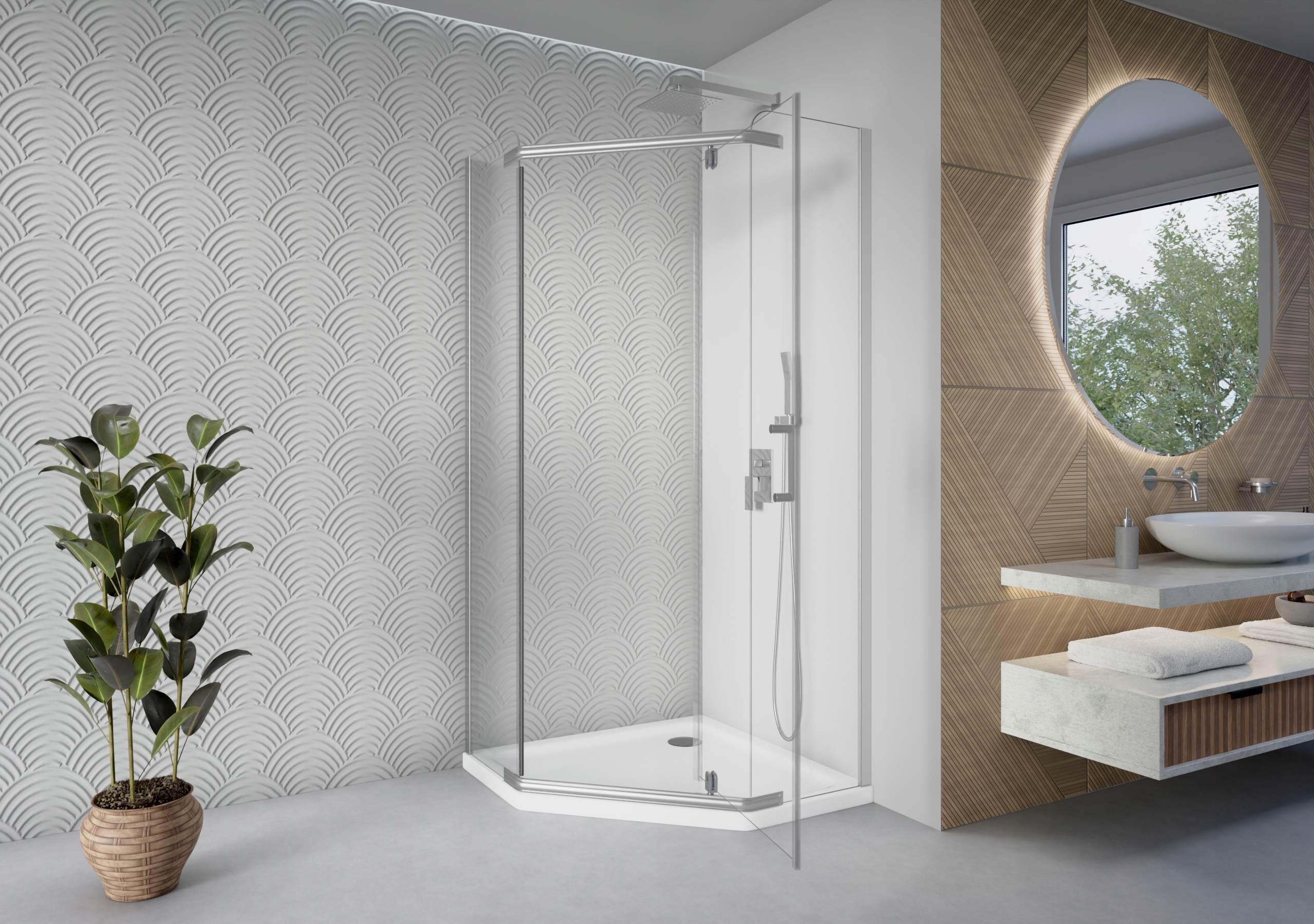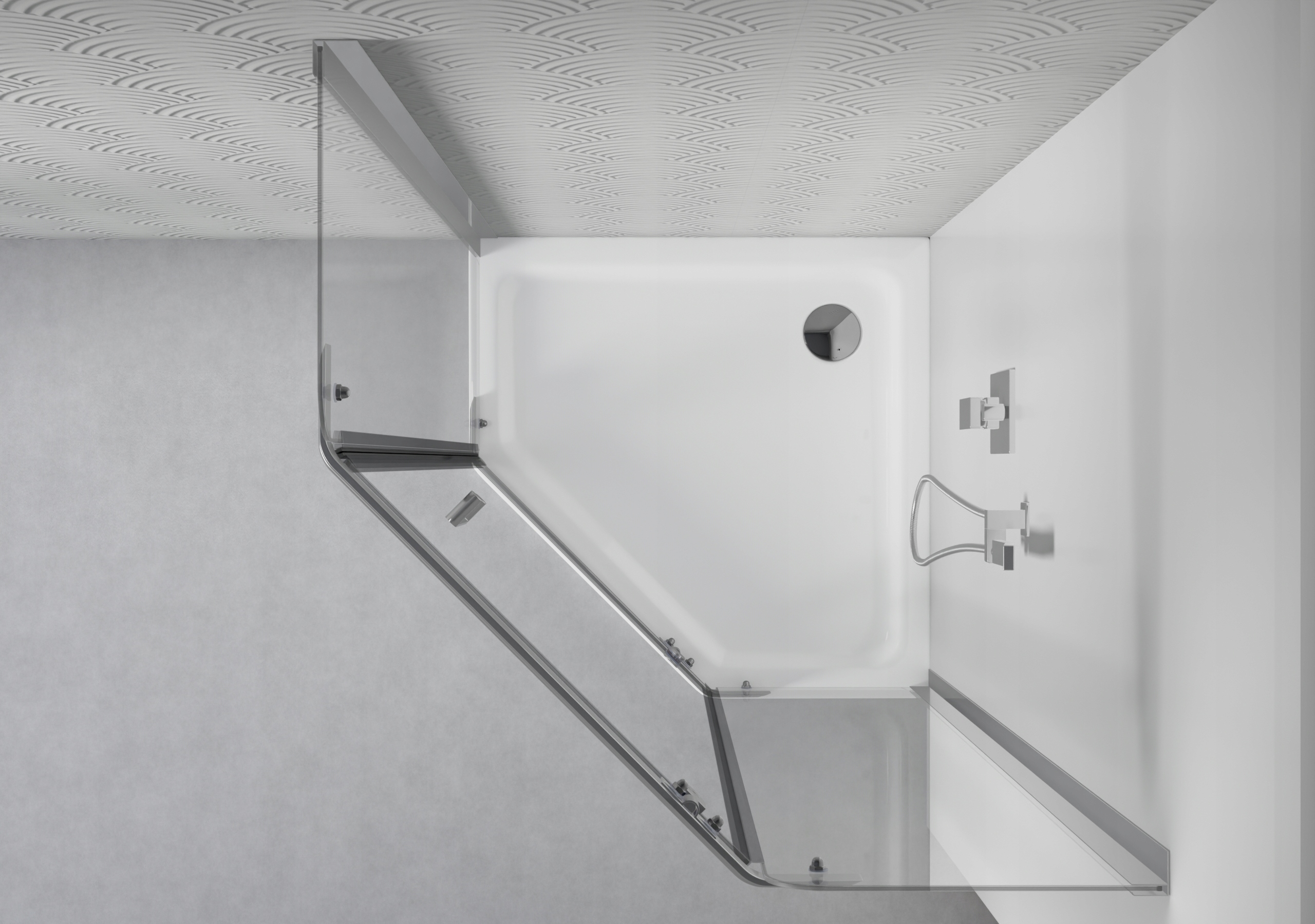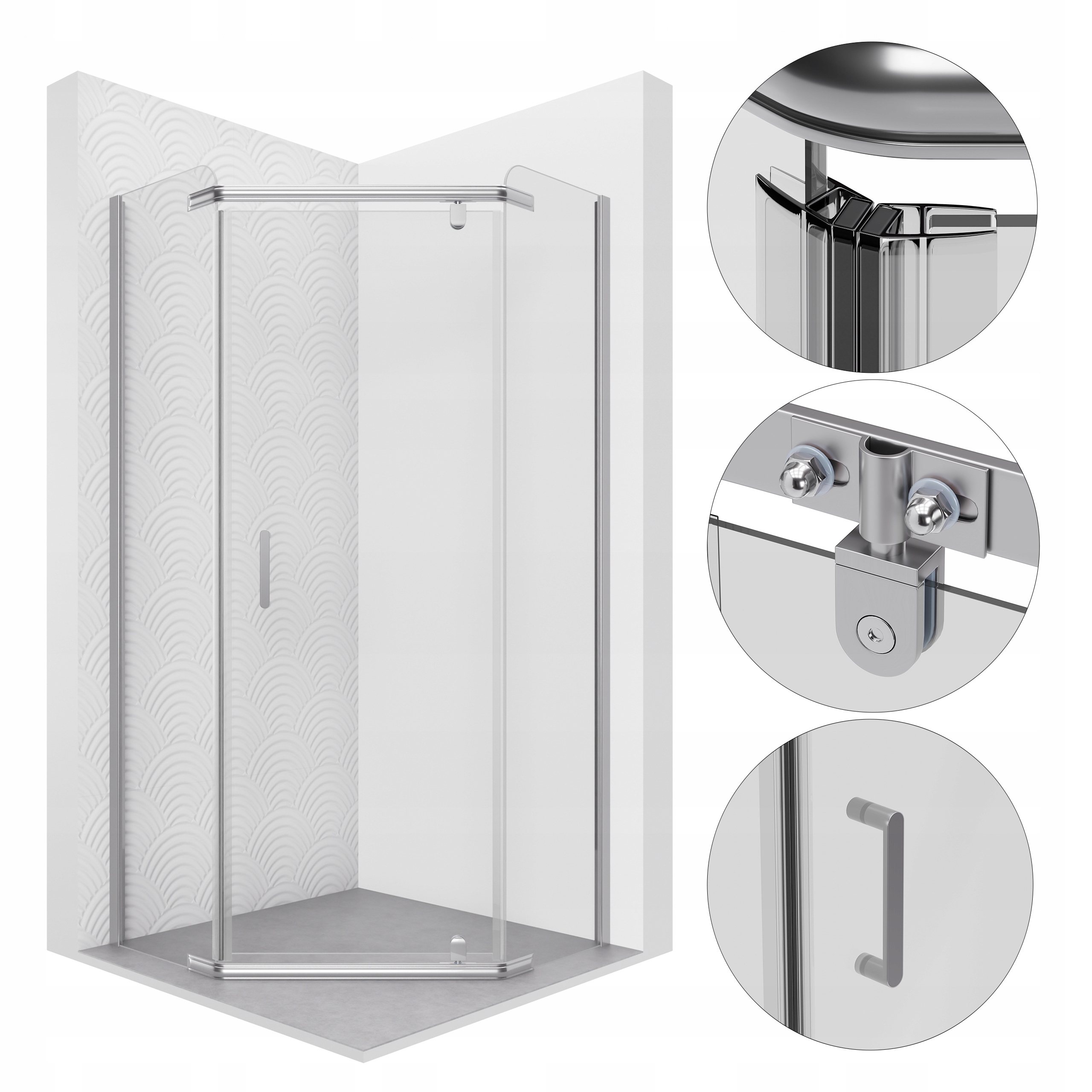 П'ЯТИКУТНА НАХИЛНА ДУШОВА КАБІНА 5K ХРОМ 90x90 СМ ДВЕРІ ESG СКЛО