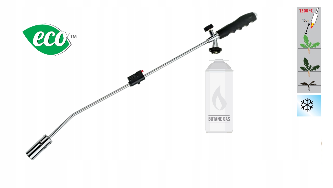 - Ефективно видаляє бур’яни, присягаючи їх сильним тепловим потоком