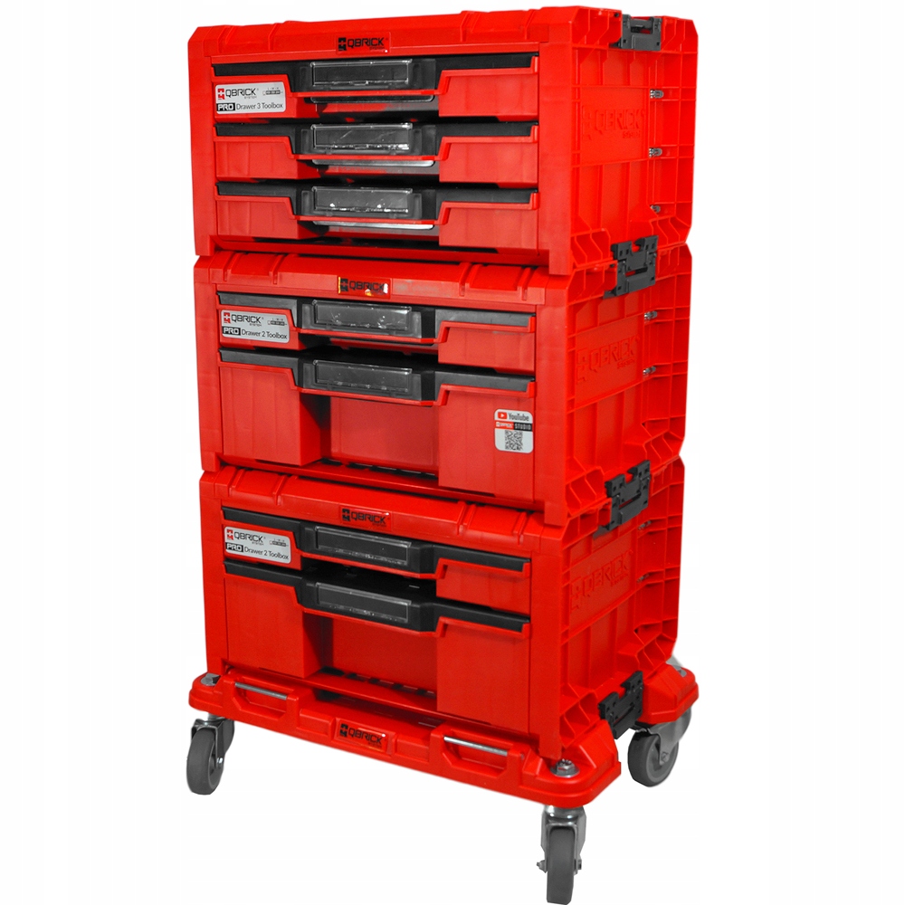 Коробка Qbrick System PRO Drawer WORKSHOP SET 3 Red Ultra HD — це найсучасніший набір ящиків із системи PRO, але менший за інші системи, але завдяки поліамідному ущільнювачу та кріпленням призначений для професійних програми.