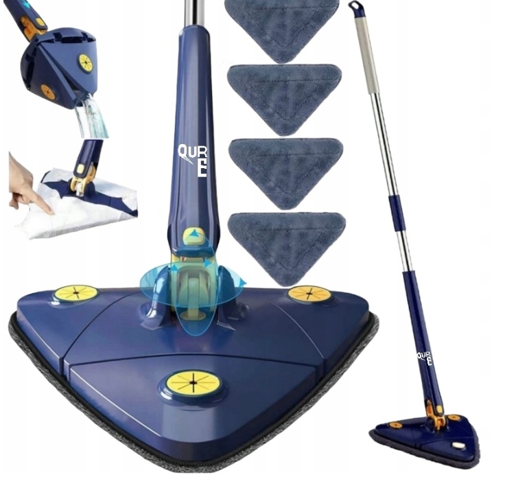 QURE ТРИКУТНА ШВАБРА САМОВИЗРАЖЕННЯ 360 ГРАДУСІВ + 4 ДОДАТКОВІ ПОДУШКИ
