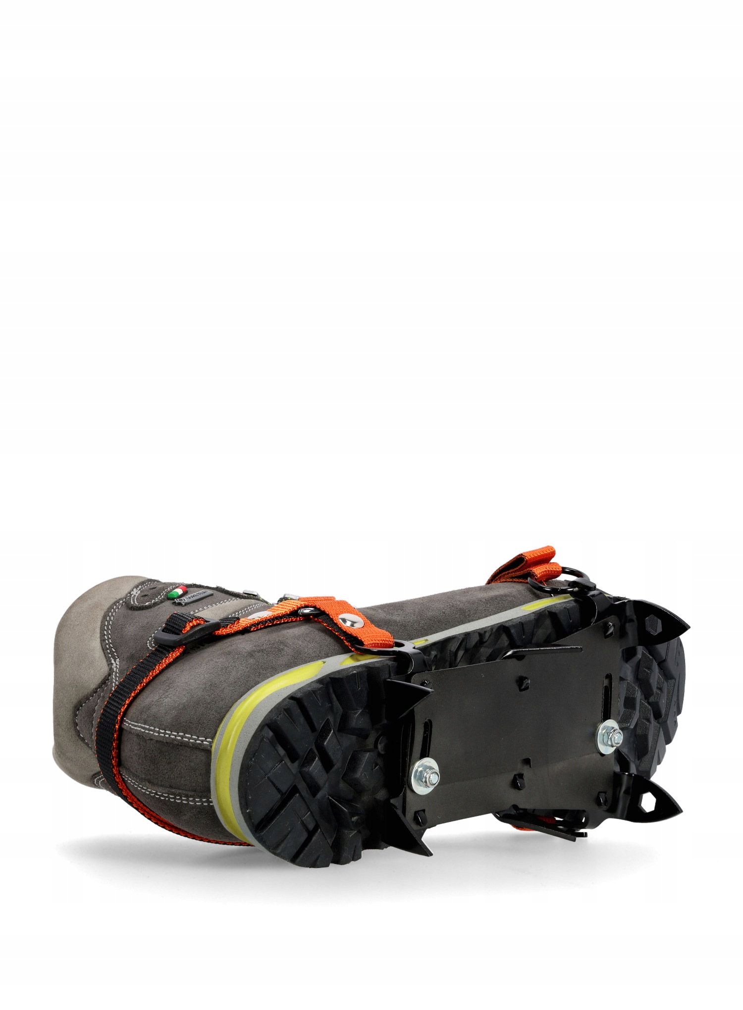 Технологія альпінізму/Міні -чампон Skylotec 6p - Чорний виготовлений з міцної сталі. Шість зубів довжиною близько 3 см кожен відповідають за адгезію. Передні та задні зуби розміщували перпендикулярно напрямку руху, збільшують адгезію раків, наближаючись і спускаючись на крижані поверхні. Легке регулювання та експлуатація системи дозволяють швидко налаштувати та видалити раків. Система коригування дозволяє змінити їх ширину, а це означає, що вони можуть бути адаптовані майже до будь -якого типу взуття та розміру. Щоб запобігти накопиченню надмірної кількості снігу під раку, руки оснащені сніжними прокладками.