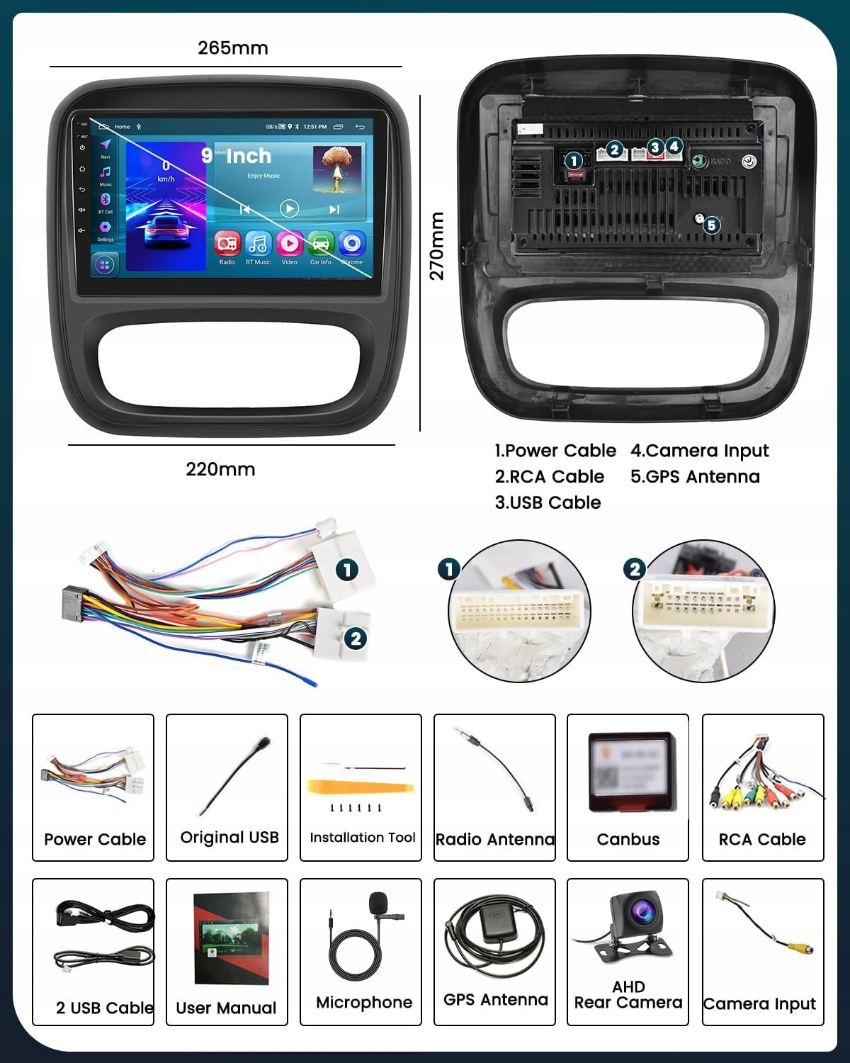 Сучасний 9-дюймовий сенсорний екран Тип 2.5D з м'якими країв виглядає елегантно і забезпечує інтуїтивну роботу. Побудований -in Android 13 з 2 ГБ оперативної пам’яті та 64 ГБ пам'яті дозволяє швидко працювати та встановити програми з Google Play, включаючи улюблені мультимедіа та навігаційні програми.