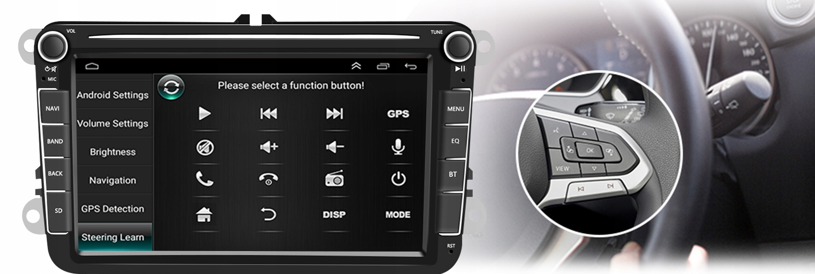 Функція запрацює відразу після встановлення магнітоли, якщо сигнал керування у вашому автомобілі знаходиться в кубі ISO. В іншому випадку вам потрібно знайти кабелі, що відповідають за керування функціями на кермі.