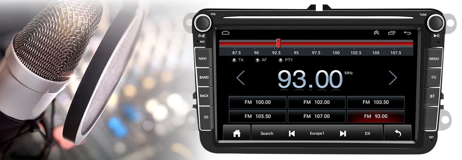 На додаток до мультимедійних аспектів, пристрій виконує свою роль класичного радіо для відтворення станцій AM/FM. Завдяки стандарту RDS ви можете приймати цифрові повідомлення та інформацію, що транслюється радіостанціями. Тепер на екрані відображатиметься поточний час, назва пісні та альтернативні частоти. Пам'ять станцій дозволяє зберегти до 18 радіостанцій і автоматично шукати їх.