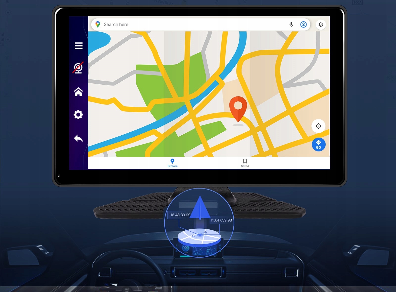 Завдяки вбудованому модулю GPS та антені, що входить до комплекту, ми можемо використовувати будь-яку навігаційну програму в автомобілі, напр. AutoMapa , Igo, TomTom, MioMap та інші. завантажено з Google play - play market як на телефоні