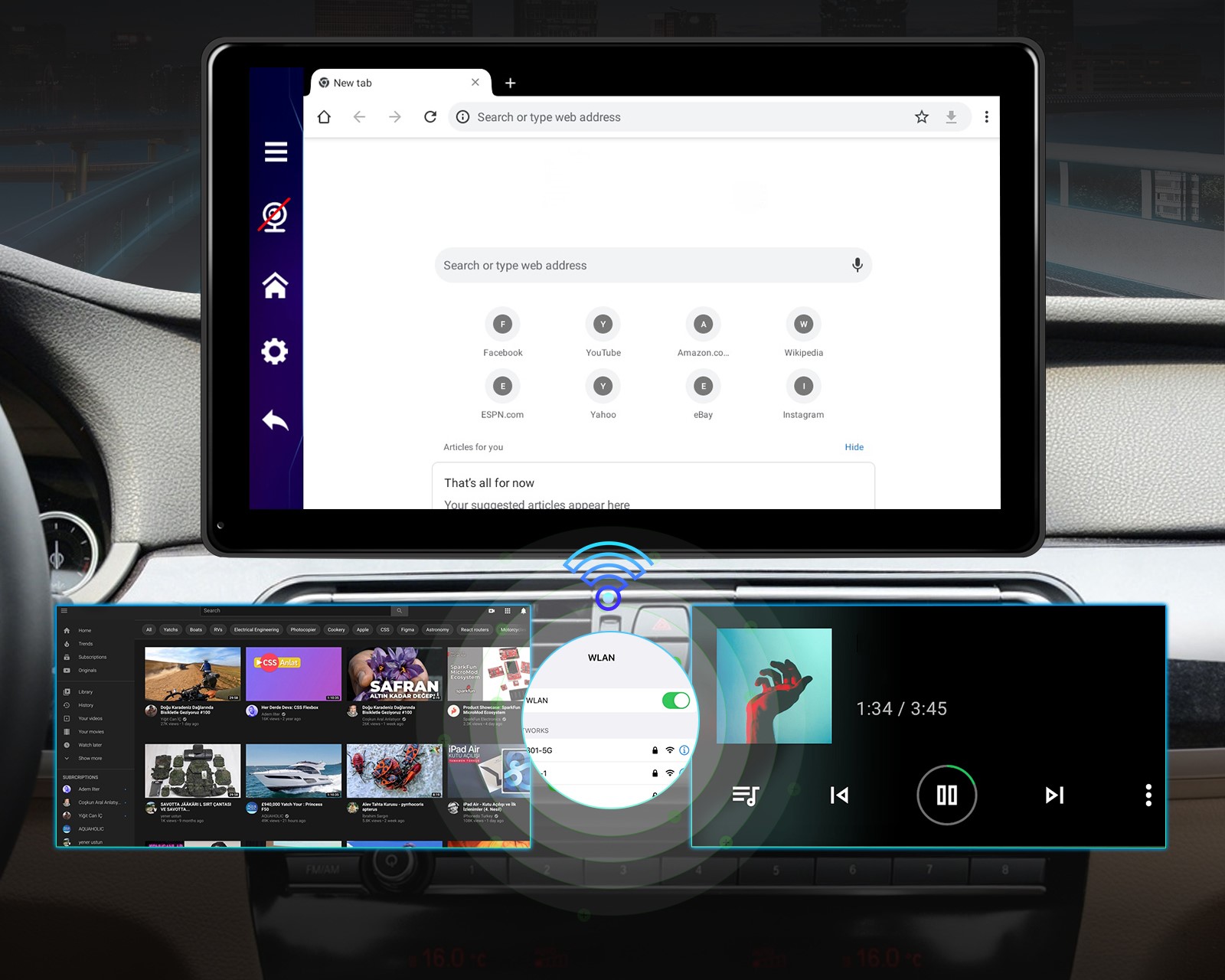 Бездротова функція Apple CarPlay | Android Auto. дозволяє переглядати Інтернет, переглядати світові новини, грати в ігри. Переглядати улюблені фільми, переглядати фотографії. Радіо має вбудований комплект гучного зв’язку,який збільшує безпеки під час водіння та дозволяє уникнути штрафів.