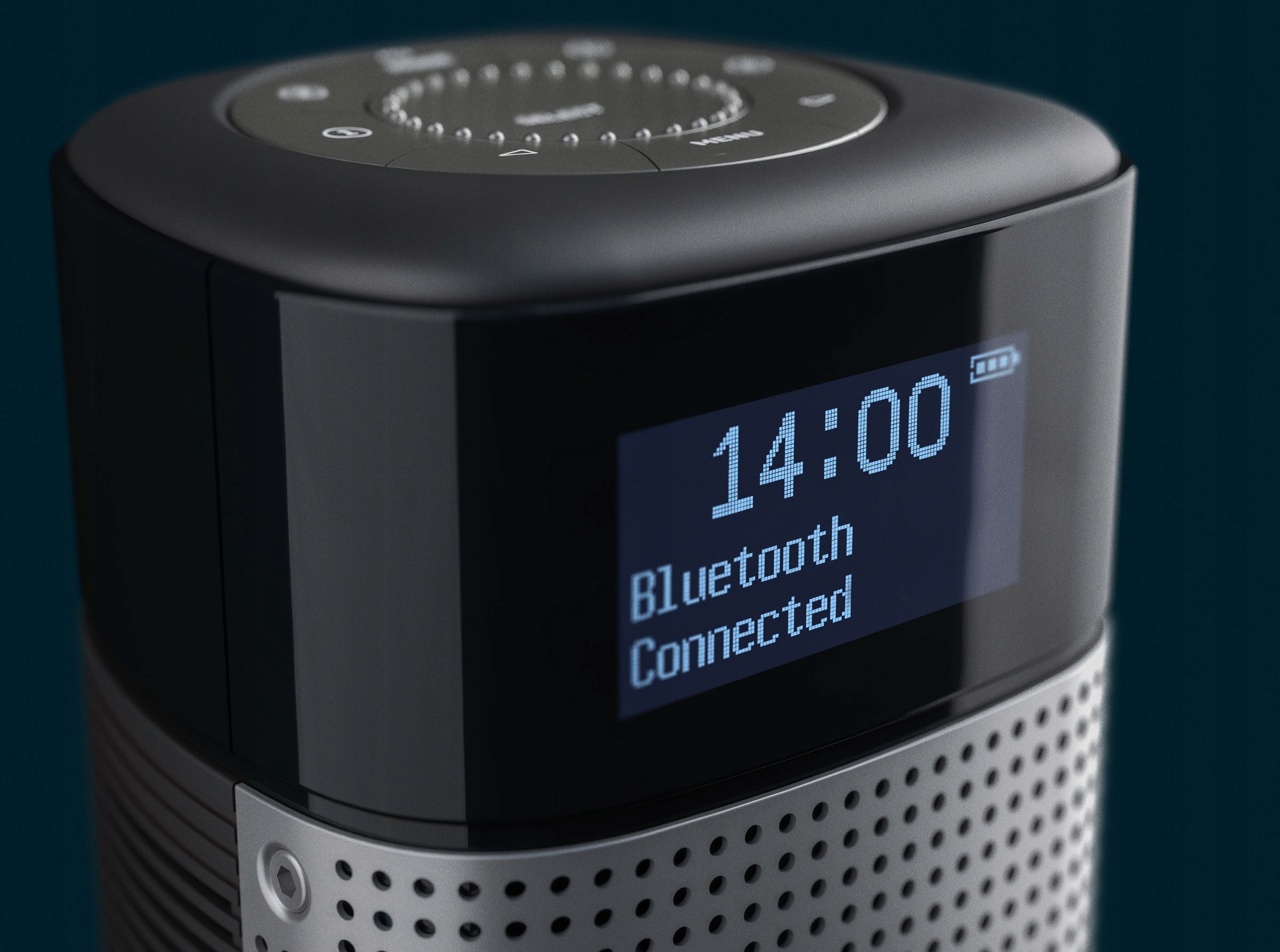 Ручка керування у верхній частині радіо дозволяє легко регулювати гучність, змінювати джерело з радіо на Spotify або Bluetooth і переходити безпосередньо до одного з раніше збережених улюблених радіо каналів.