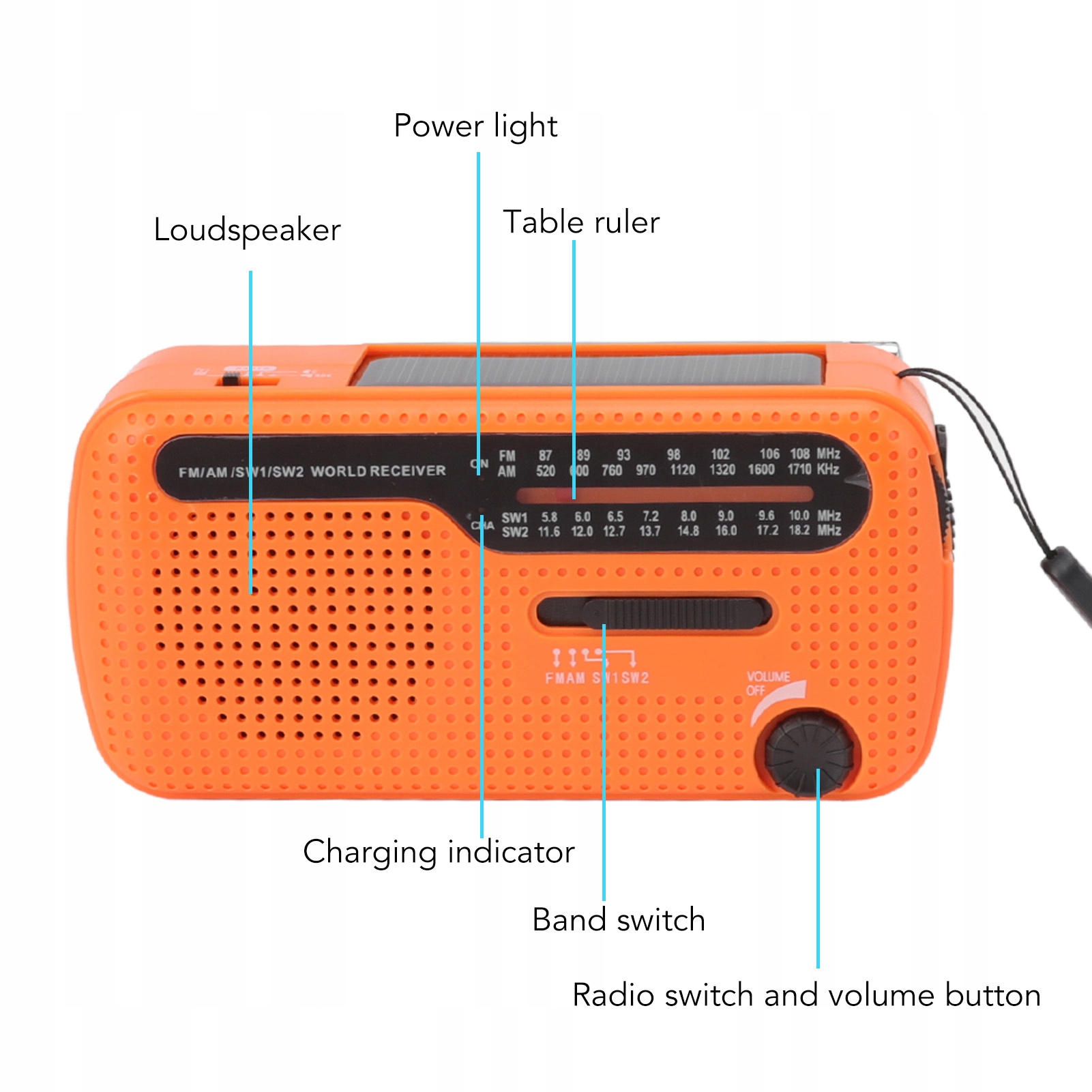 5. Компактність і портативність: погодне радіо підтримує AM, FM, SW1, SW2 як аварійний набір для кемпінгу, подорожей, походів або інших заходів на свіжому повітрі.