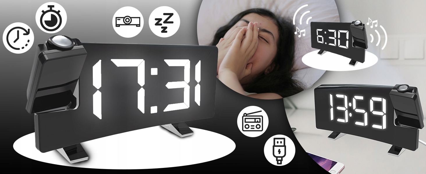 Чудовий годинник - це незамінний пристрій у кожному будинку. Саме завдяки його простоті ми так корисні для нас. Це вказує на годину двома способами, класично - на дисплеї та використання проектора. Все це було встановлено в елегантному вигляді зручного доповнення до спальні. Його світлодіодний, розбірливий дисплей зробить поточний час видно з значної відстані.