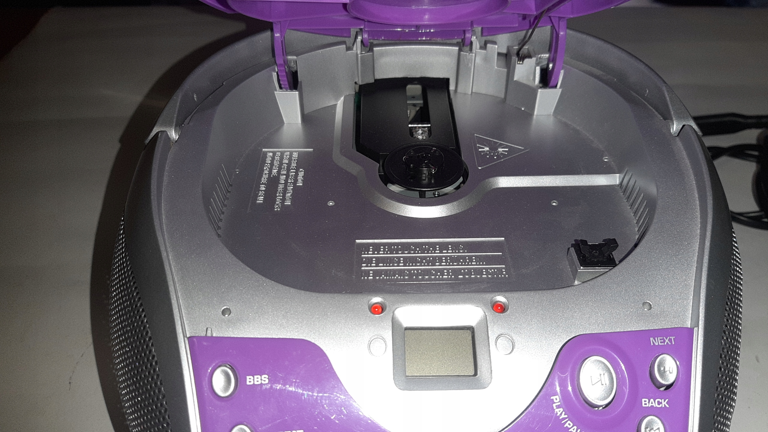 Програвач компакт-дисків не працює належним чином, обкладинка компакт-диска механічно пошкоджена, антена пошкоджена також пошкоджено, але радіо працює нормально.