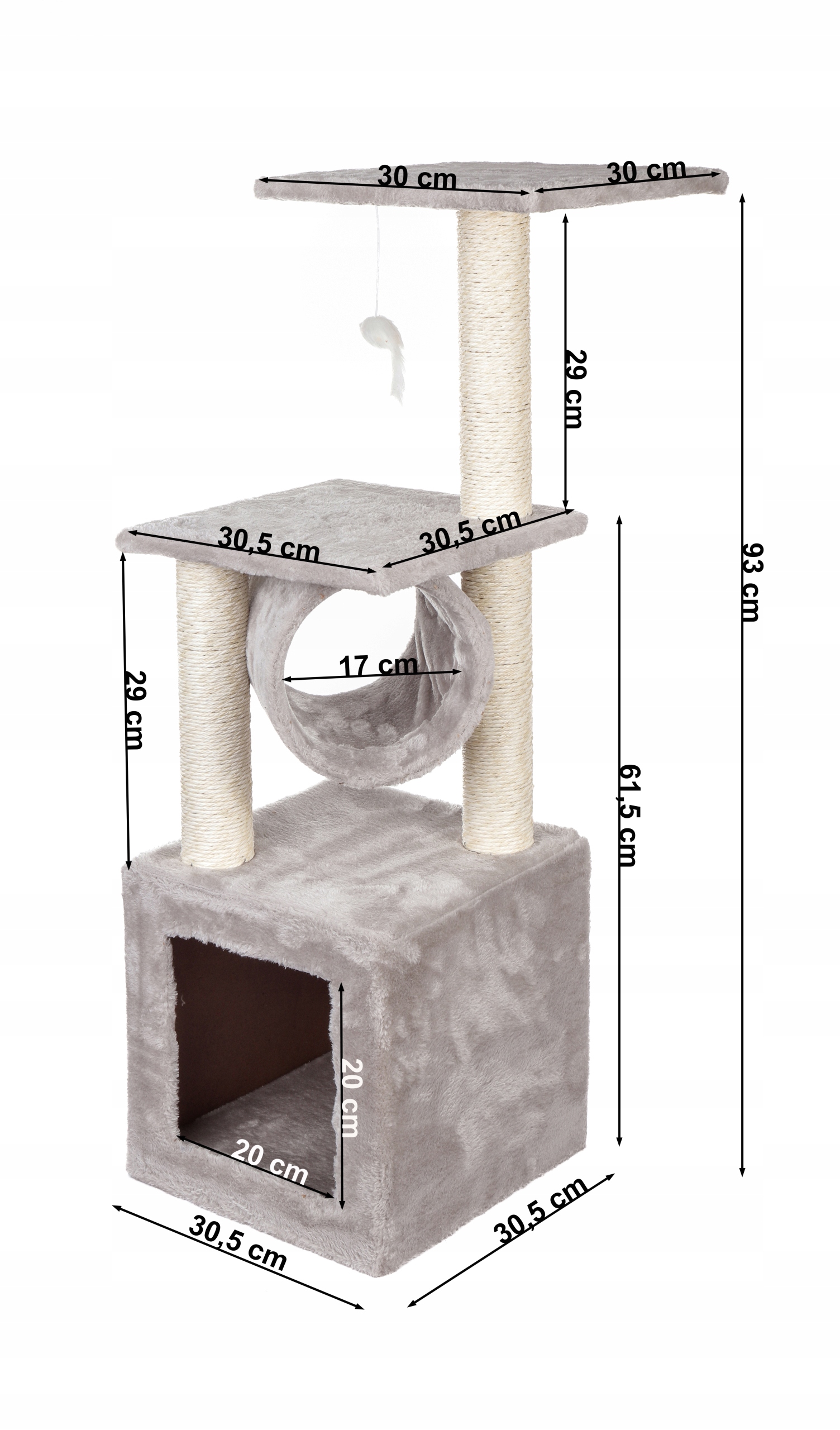 Radocat szare legowisko domek dla kota z zabawkami i tubą, 93cm, 4 poziomy