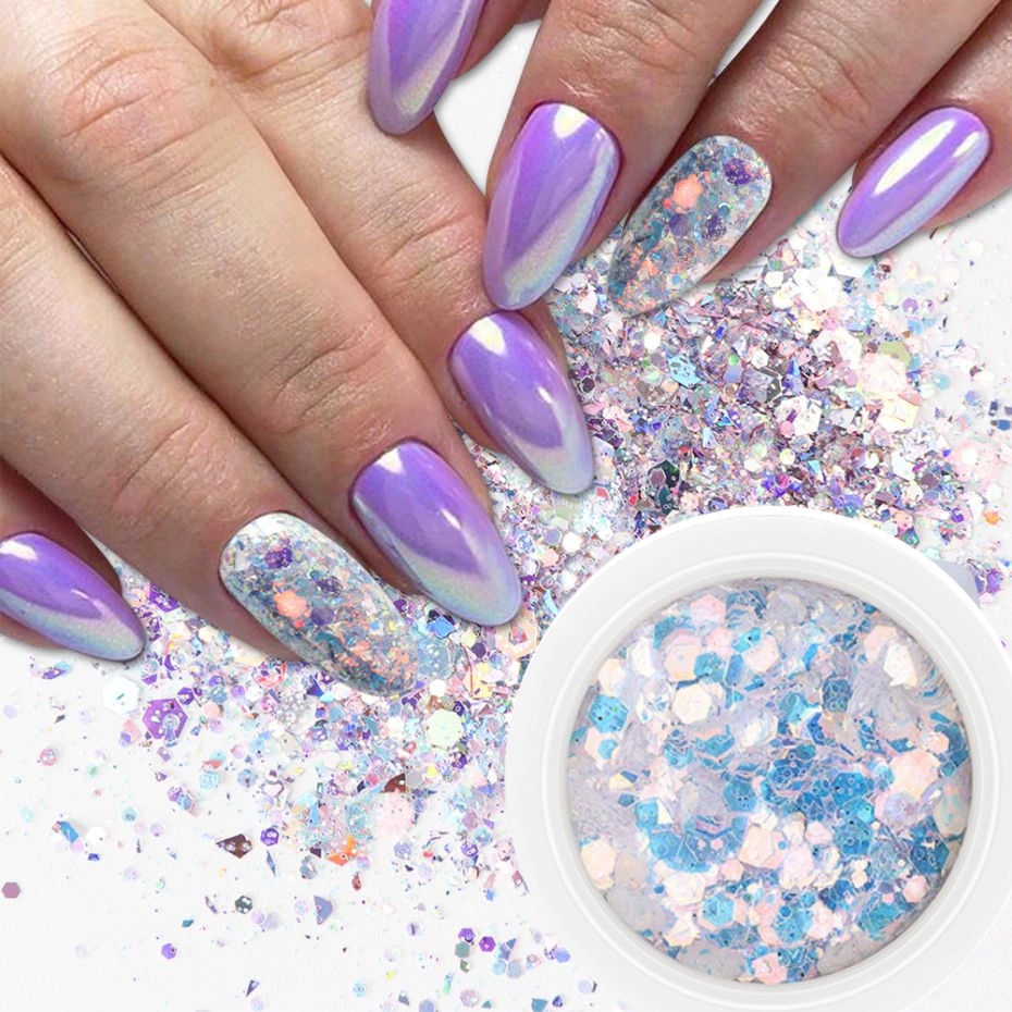Райдужні блискучі пластівці для дзеркала для нігтів