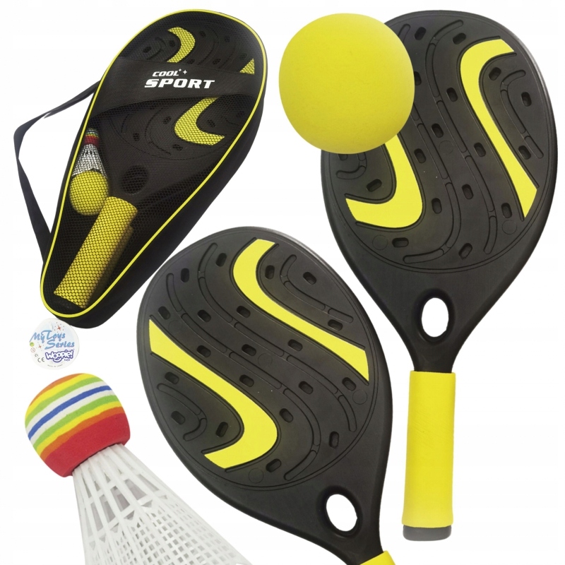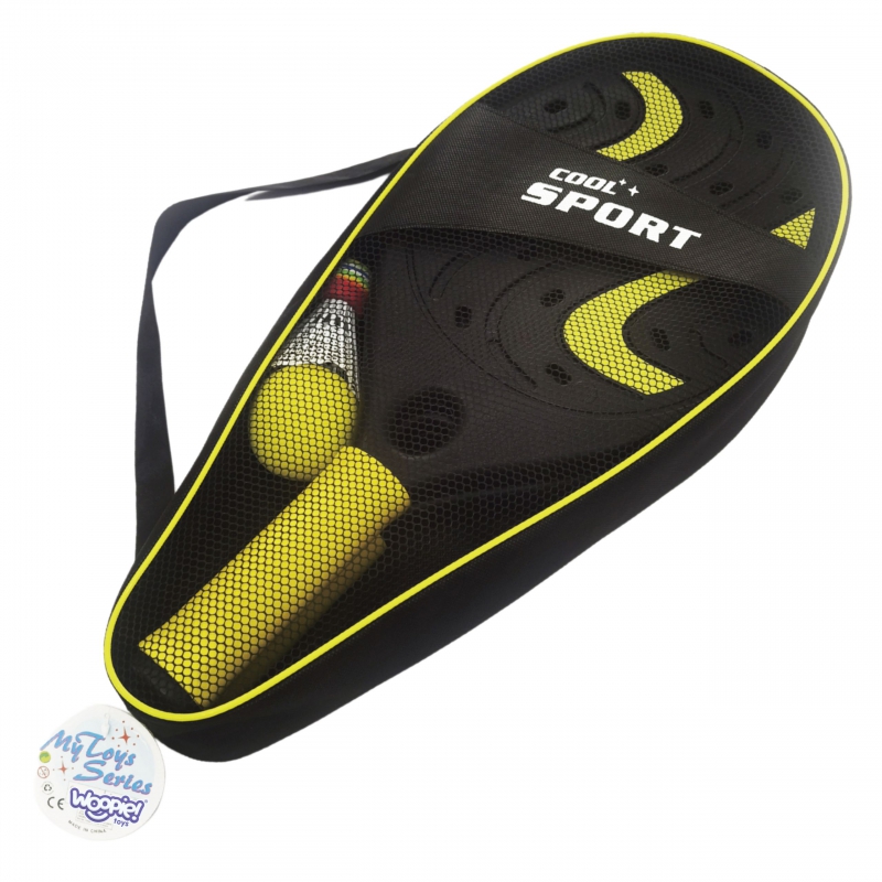 - Набір ракеток від торгової марки WOOPIE - чудова ідея для активного проведення часу в теплі дні. Гарний візерунок і хороша якість - гарантія гарного задоволення! У набір входять дві міцні ракетки, м'яч з м'якої губки і волан - завдяки цьому разом з ракетками WOOPI можна грати в різні спортивні ігри! Для зручності транспортування та зберігання набір упакований в якісний чохол на блискавці.