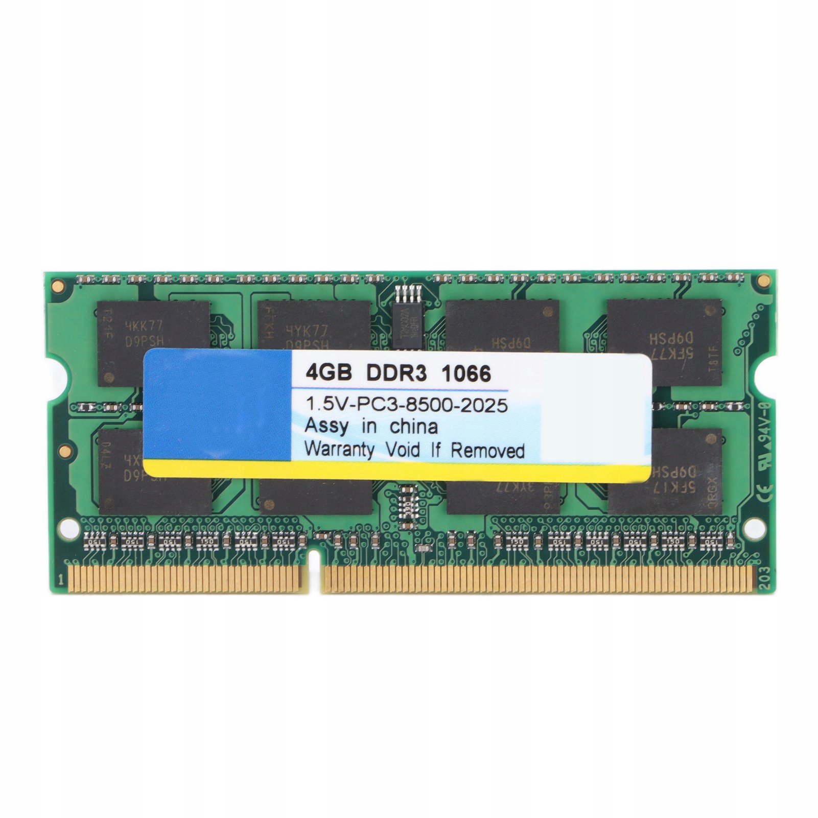 ⏺ Об’єм пам’яті 4 ГБ, частота пам’яті 1066 МГц, пропускна здатність PC3-8500, напруга 1,5 В, номер контакту 204PIN.