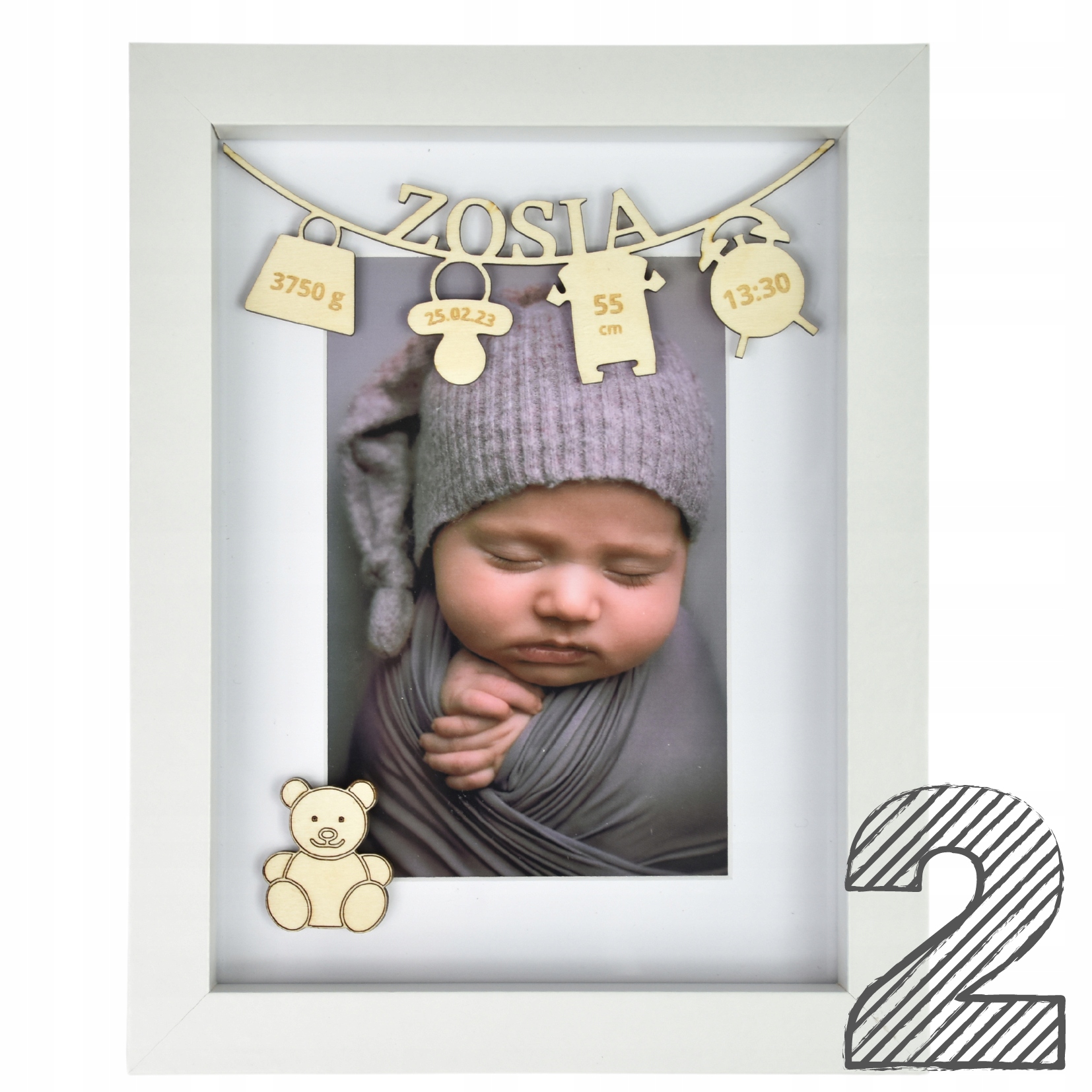 - біла дерев'яна рамка, розміри: 22,5 x 17,5 см