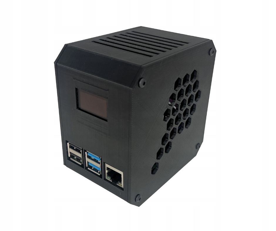 Чохол MiniTower для комп’ютера Raspberry Pi 4. Має отвори для портів microHDMI та USB-C. Призначено для OLED-дисплея 0,96" 128x64. Він має отвори зверху та з боків, які забезпечують потік повітря.
