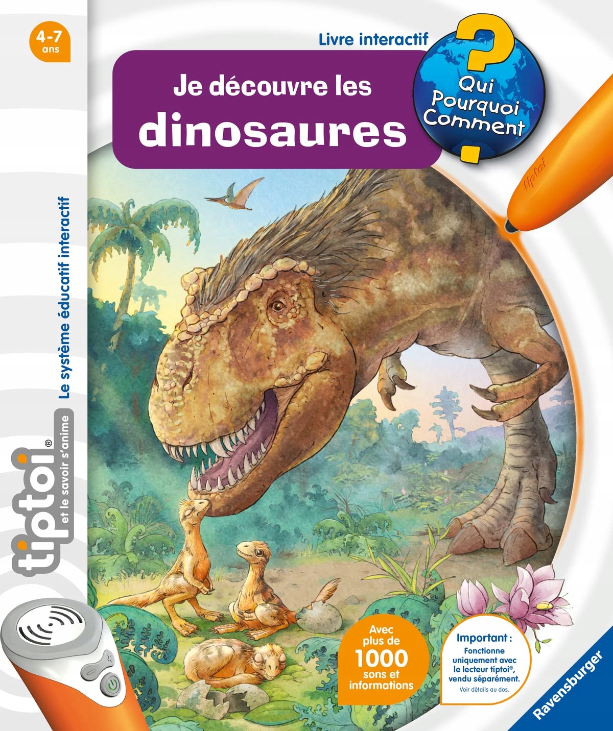Ravensburger - tiptoi® - Повний набір інтерактивної читалки + книга Я відкриваю динозаврів - Електронна навчальна гра, без екрана - Від 4 років - Французька версія - 00 143