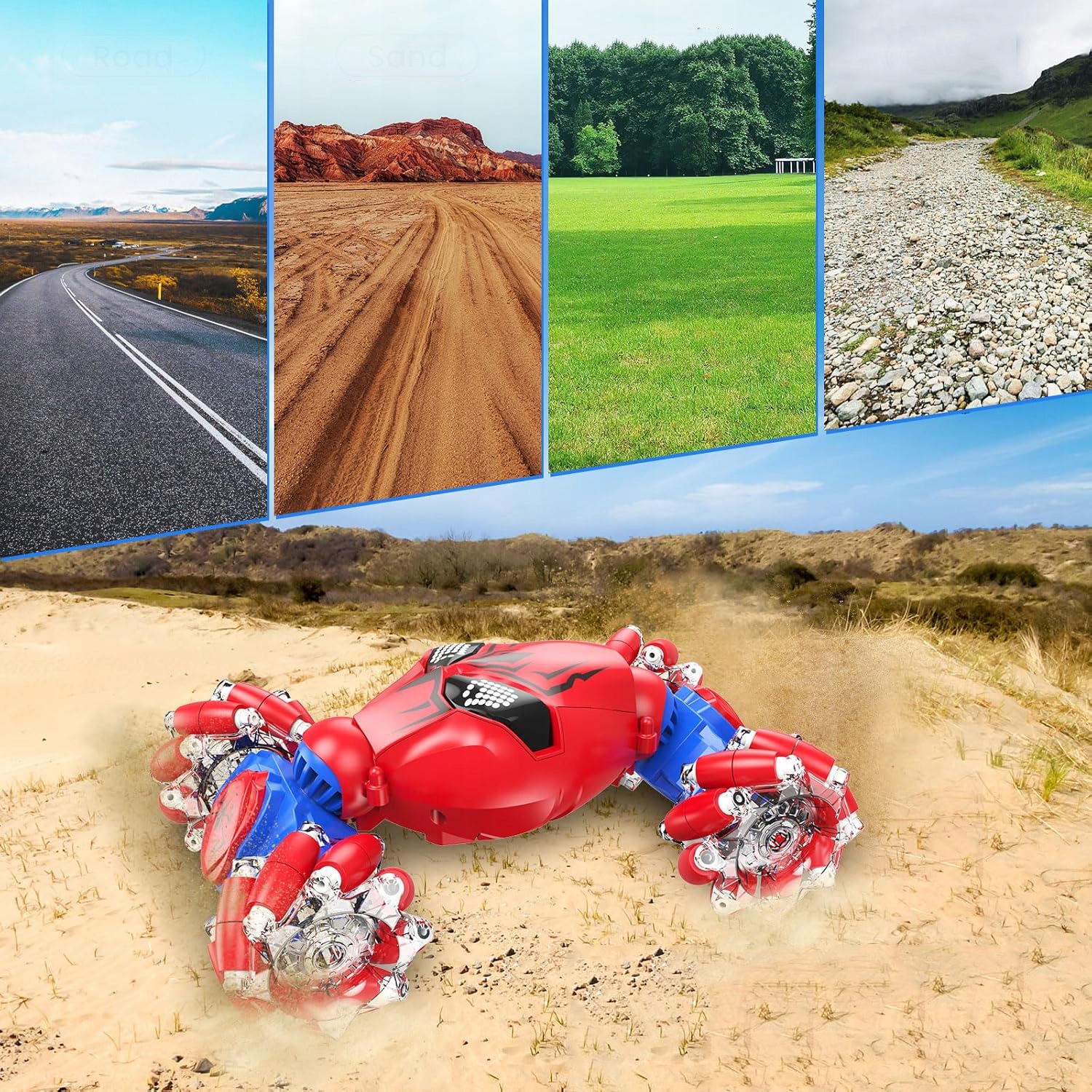 🦸🏼【Трюковий автомобіль-павук】. Класний зовнішній вигляд автомобіля з дистанційним керуванням може привернути увагу дітей і зробити його популярною іграшкою. Крім того, RC-машина може обертатися на 360°, дрейфувати, їздити вперед і назад, вліво і вправо і виконувати веселі трюки. Діти отримають величезне задоволення від керування цим креативним автомобілем RC Spider!