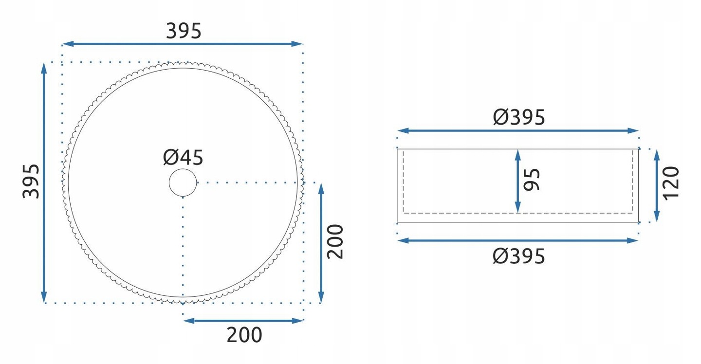 - Ширина умивальника: 395 мм