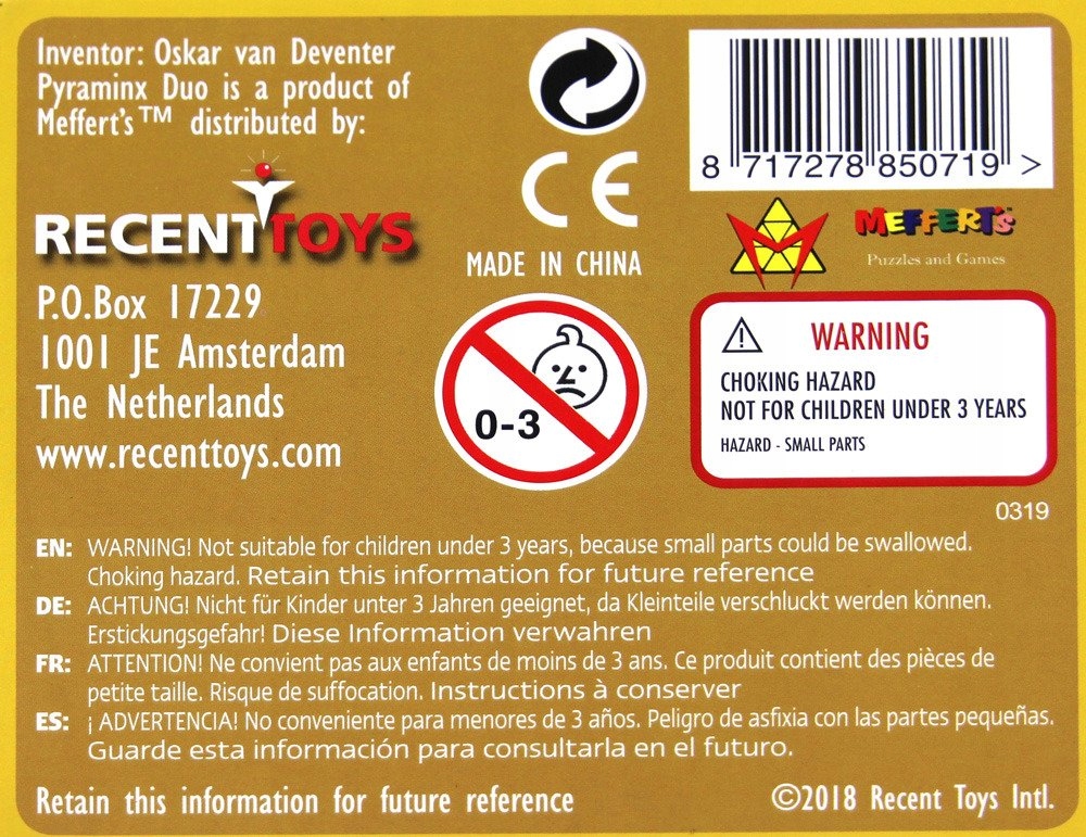 Просматривая «Recent Toys Pyraminx Duo łamigłówka poziom 2/5», вы можете быть уверены, что данный товар из каталога «[rubrica_name]» будет доставлен из Польши и проверен на целостность. В цене товара, указанной на сайте, учтена доставка из Польши. Внимание!!! Товары для Евросоюза, согласно законодательству стран Евросоюза, могут отличаться упаковкой или наполнением.