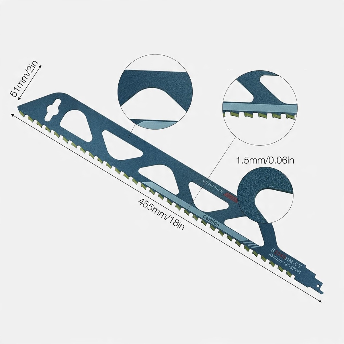 【Полотно пилки з вольфрамового сплаву високої твердості】 Корпус виготовлено зі стабільного та зносостійкого високовуглецевого сплаву. Крок зубів 13 мм забезпечує швидкий результат різання. Надширокий корпус діаметром 51 мм і товщиною 1,5 мм підходить для різання найтвердіших абразивних матеріалів. Доступні моделі: S1243 (455 мм) Корпус виготовлений зі стійкого і зносостійкого високовуглецевого сплаву. Крок зубів 13 мм забезпечує швидкий результат різання. Надширокий корпус діаметром 51 мм і товщиною 1,5 мм підходить для різання найтвердіших абразивних матеріалів. Доступні моделі: S1243 (455 мм)