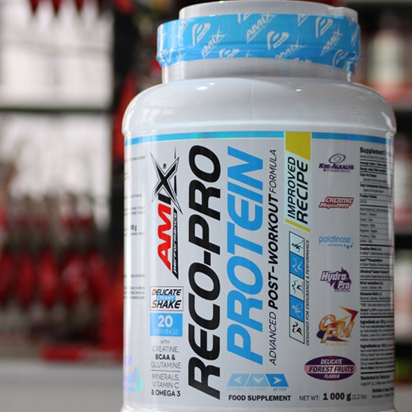 Високоякісний протеїновий комплекс на основі білкового ізоляту CFM®. Забезпечує максимальне живлення м'язів, скорочує період регенерації і виключає появу хворобливості після тренувань. Поєднання кількох джерел білка робить добавку добре збалансованою та ефективно виконує свою роль, адаптуючись до потреб різних спортсменів. Amix Reco-Pro Protein піклується про аспекти здоров’я імунної та травної систем – він містить білкові фракції, а саме – бета-лактоглобулін, альфа-лактоглобулін, сироватковий альбумін, імуноглобулін, гломомакропептид, лактоферин, лактопероксидаза), які покращують функціонування травну систему і благотворно впливають на травну систему імунну. Недоступно в більшості конкуруючих продуктів.