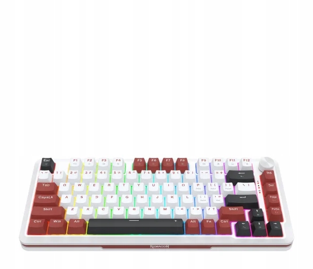 Компактна система 75% у біло-червоних кольорах забезпечує унікальний вигляд, який відрізнятиме ваше положення. Клавіатура повністю сумісна з Windows та MacOS, що робить її універсальним вибором не лише для гри, але і для роботи. Крім того, мультимедійна ручка, яка не тільки дозволяє регулювати гучність, але й швидку зміну підсвічування RGB дає вам можливість контролювати своє ігрове середовище та працювати з повною зручністю.