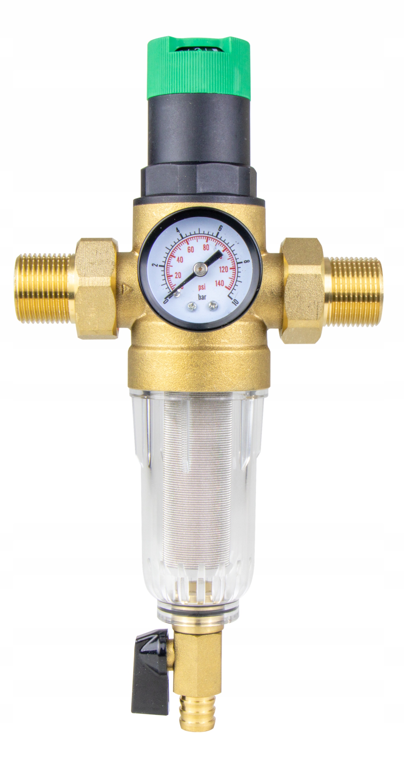 Редуктор тиску з сітчастим фільтром із нержавіючої сталі стабілізує тиск і зупиняє забруднення, такі як пісок чи іржа.