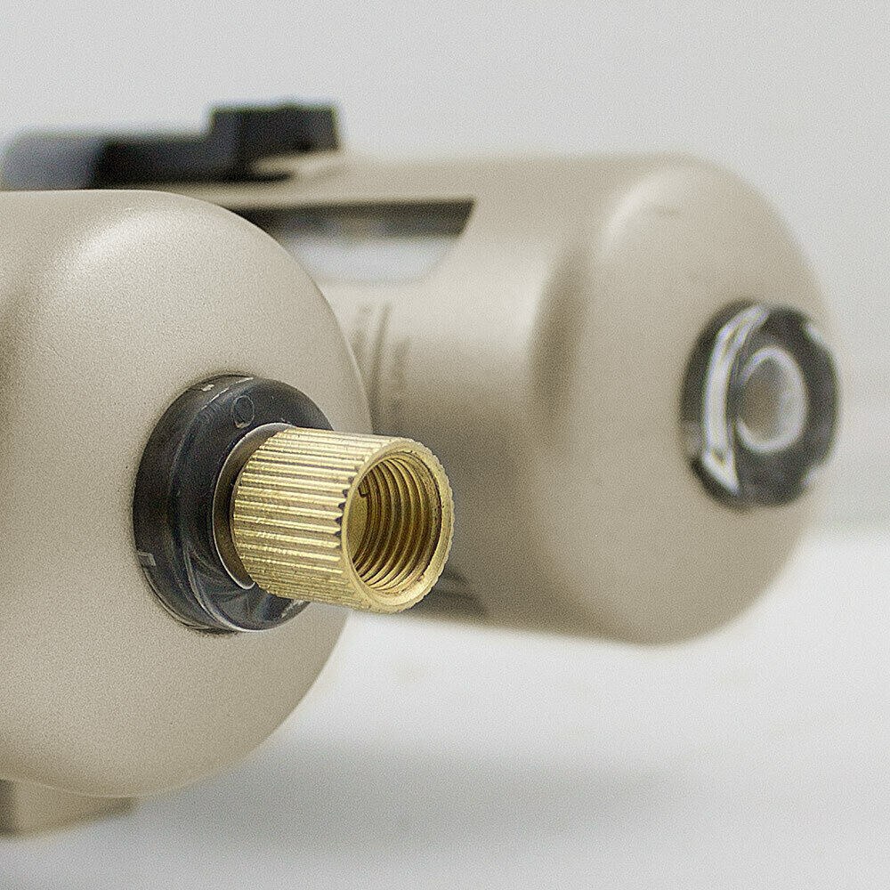 The maintenance unit covering the filter, pressure gauge and fog lubricant regulates the working pressure and continuously, Захистає від раптових падінь тиску. Команда з технічного обслуговування складається з водопровідного та масляного сепаратора, регулятора тиску тиску (непостійного тиску).