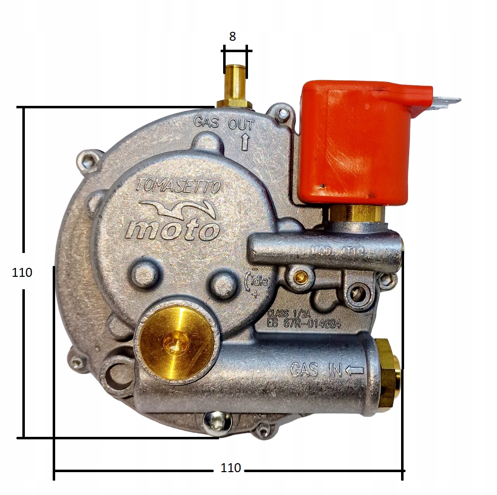 Малий одноступінчастий редуктор LPG для двигунів з повітряним охолодженням. Його можна використовувати для керування скутерами, електрогенераторами та газонокосарками. Редуктор інтегрований з клапаном і фільтром. Блок живлення з мідної труби 6 мм. Вихід газу через кабель 8 мм. На інших аукціонах можна знайти кабелі для живлення редуктора від газового балона.