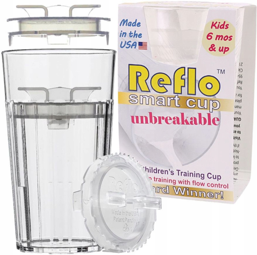 Чашка Reflo ідеально підходить для навчання пити «зі склянки» завдяки використанню інноваційної запатентованої вставки. Це змушує рідину виливатися дуже тонким струменем.