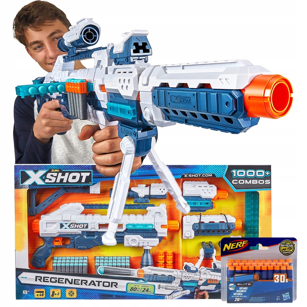 Регенератор — це дивовижний пусковий пристрій, за допомогою якого ви можете підготуватися до будь-якої битви. Завдяки модульній структурі та безлічі аксесуарів ви можете зібрати його більш ніж 1000 різними способами та створити свій власний ідеальний пусковий пристрій. Використовуйте сошку та приціл для точної стрільби по мішені або замініть короткий ствол і цівку, щоб розпочати бойовий штурм ворожої бази. Незалежно від стилю, Regenerator не тільки добре виглядає, але і має дуже хороші параметри. З цієї пускової установки, що перезаряджається вручну, ви можете стріляти на відстань понад 27 метрів. Набір разом із багатьма аксесуарами включає 48 дротиків, 2 магазини, приціл, ствол, ложу та багато іншого.